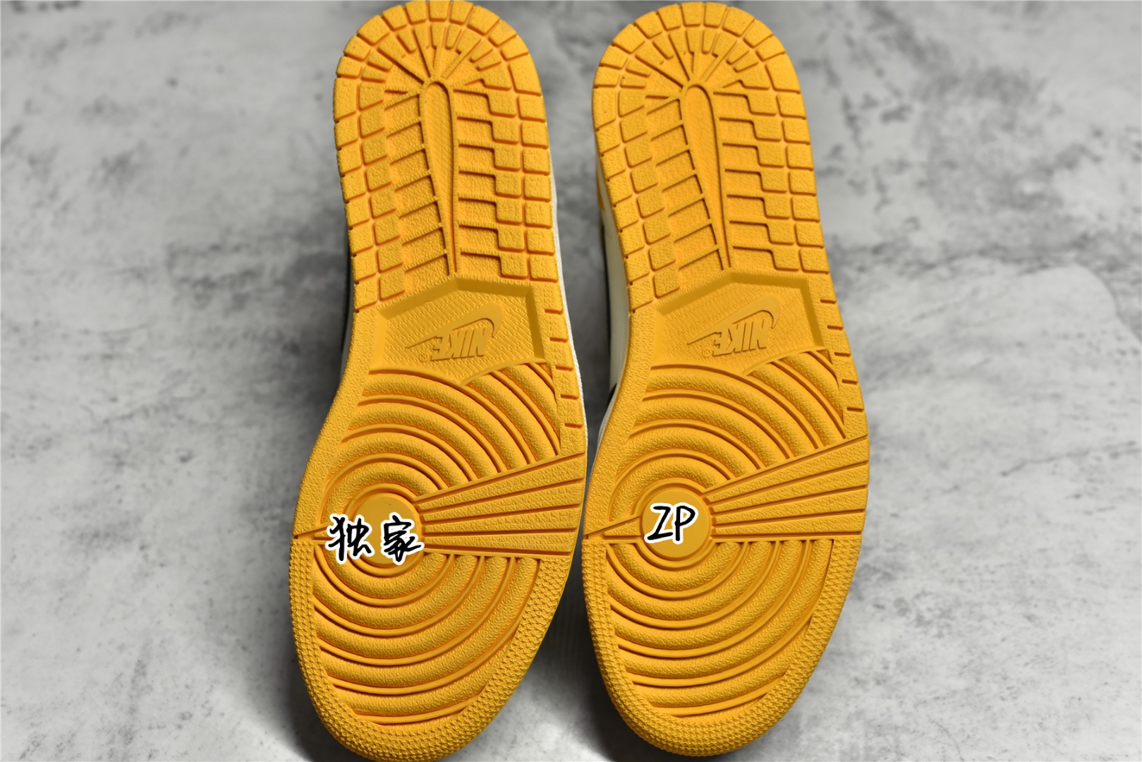 ?? Comparative identification: Air Jordan 1 Retro High OG AJ1 Joe 1 Black and yellow toes