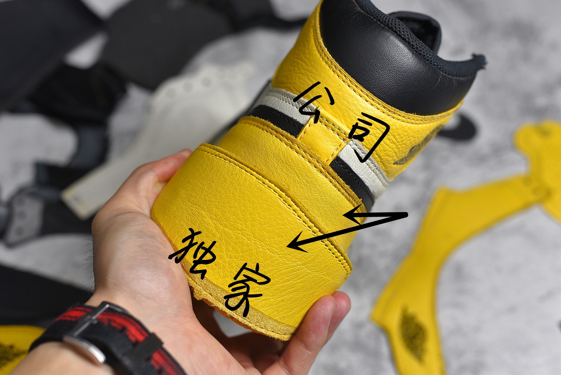 Detail comparison Air Jordan 1 Retro High OG "Yellow Toe" Exclusive yellow toe