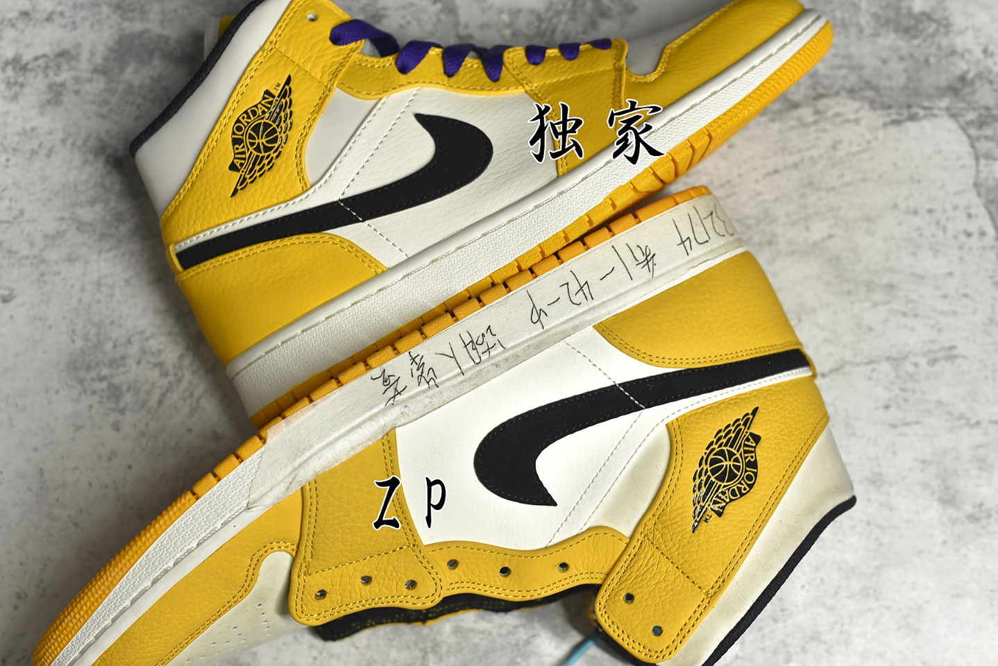 ??ZP comparative identification The Lakers colorway is the only pure original level Air Jordan 1 MiD on the market