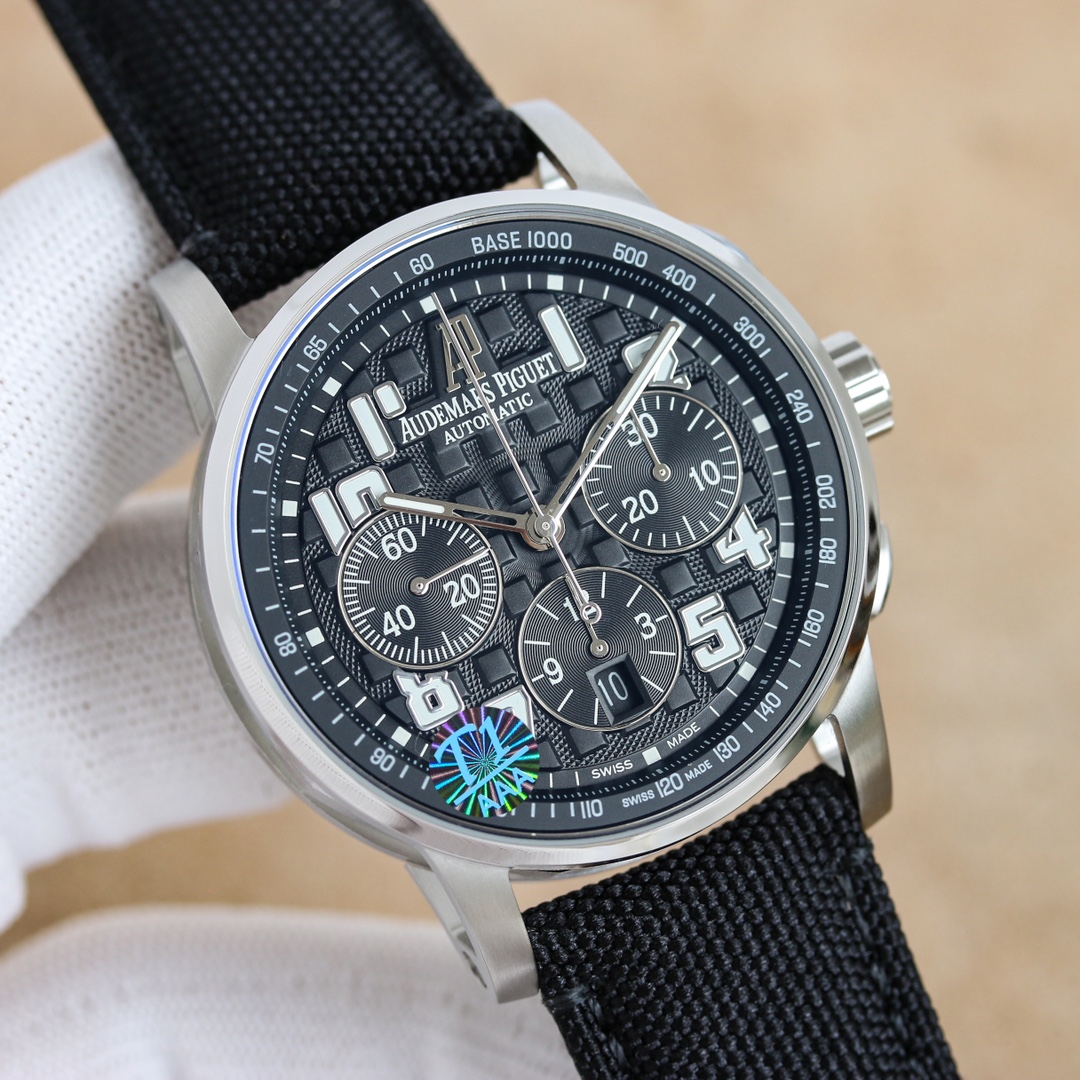 APF Audemars Piguet -AP, CODE11.59 Automatic Chronograph Series 1? Material: 316L stainless steel 2? Movement: Equipped with a stable 7750 movement, modified original Calibre44013? The glass mirror is made of anti-glare crystal sapphire 4? The strap is made of imported Italian calfskin and canvas leather 5? The clasp is a practical original pin buckle 5? Water resistance: 10 degrees water resistance, can dive 300 meters 6? Dimensions: 41mm