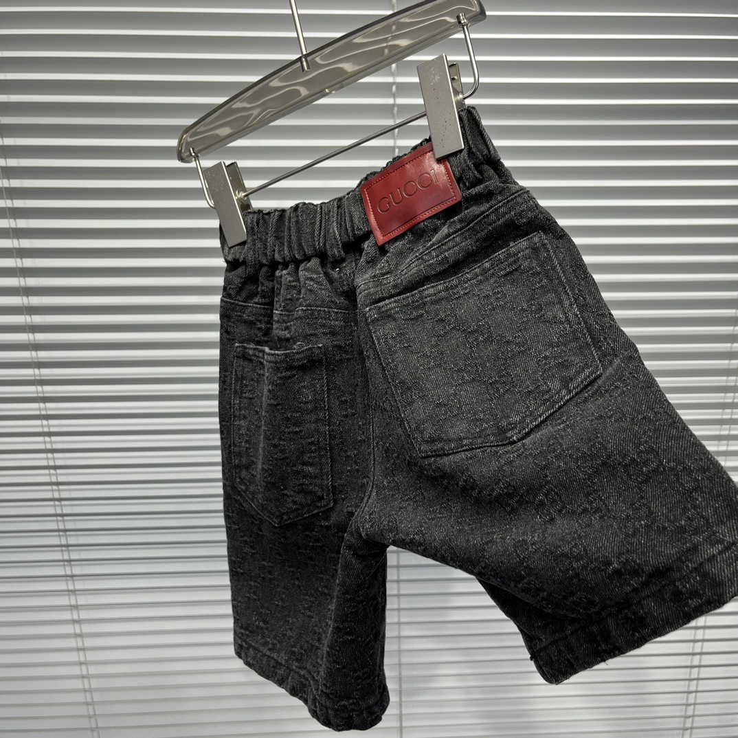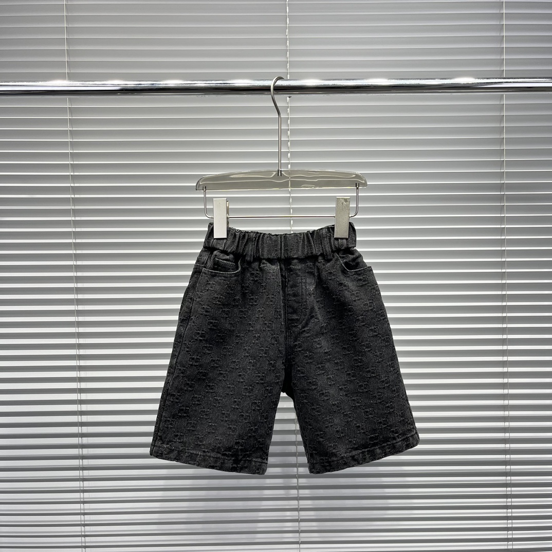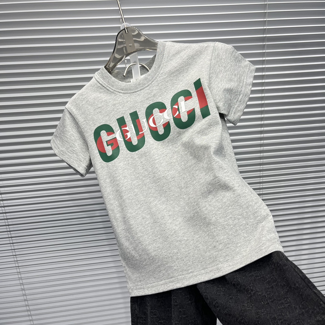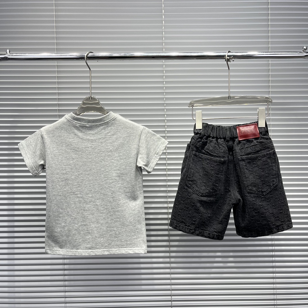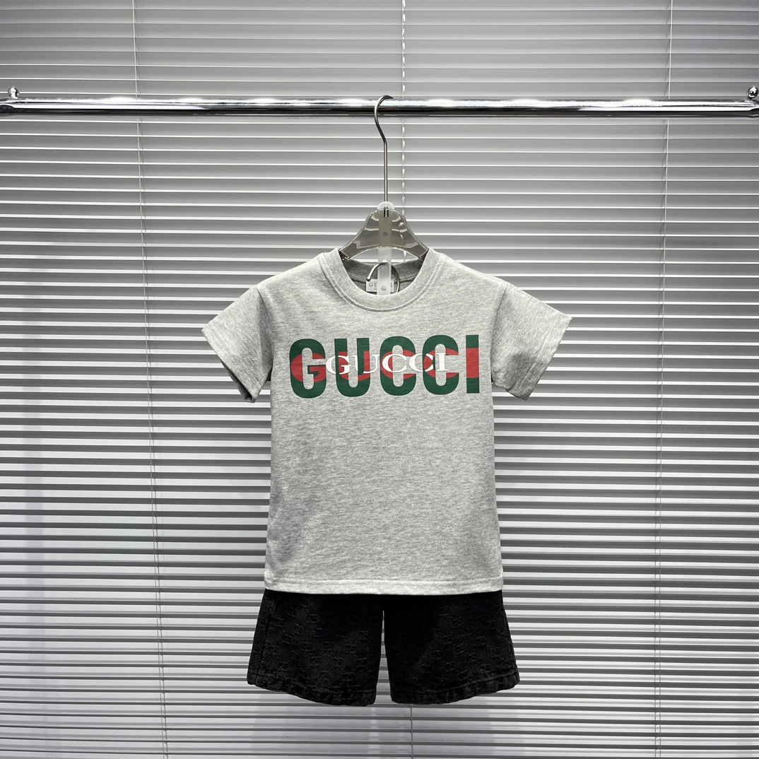 Gucci Gucci, high-end children's wear, private suits, classic letters logo short sleeve T-shirt, tie-in G home new black printed denim shorts, full body comfortable, good-looking, code number: 100/110/120/130/140/150/160 cm