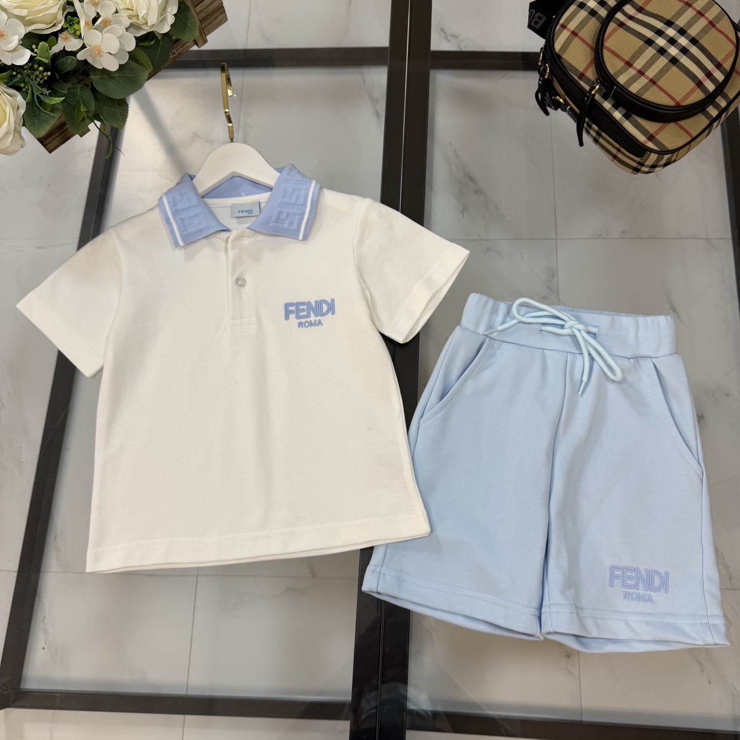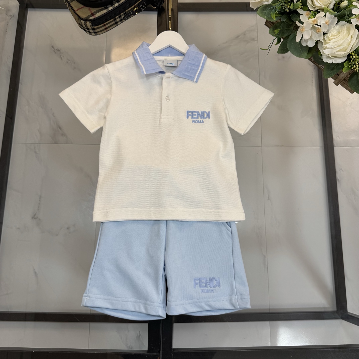 FENDI FENDI, high-end children's wear, men's and women's tong tong suit custom import perle cotton fabrics, chest embroidery letters, tie-in knickers of pure cotton embroidery, upper body comfortable, good-looking, code number: 90/100/110/120/130/140/150 cm