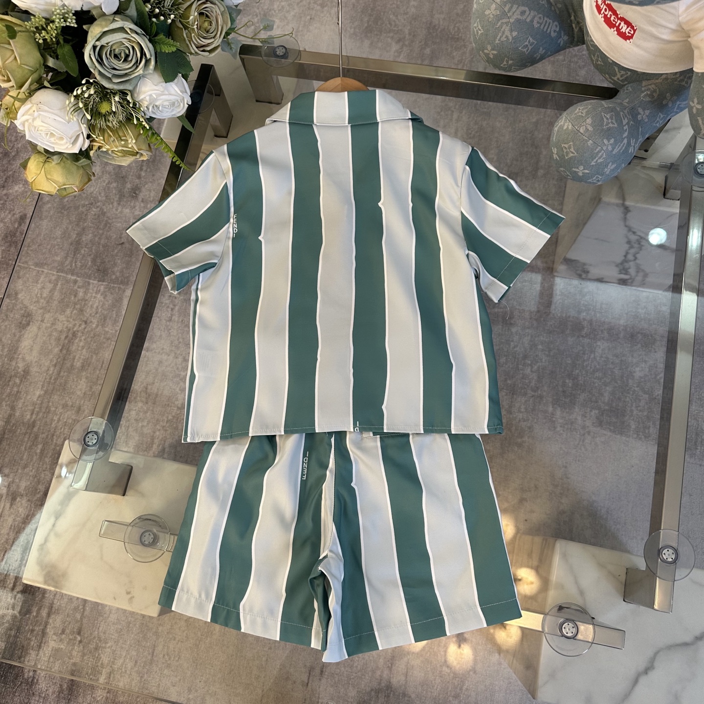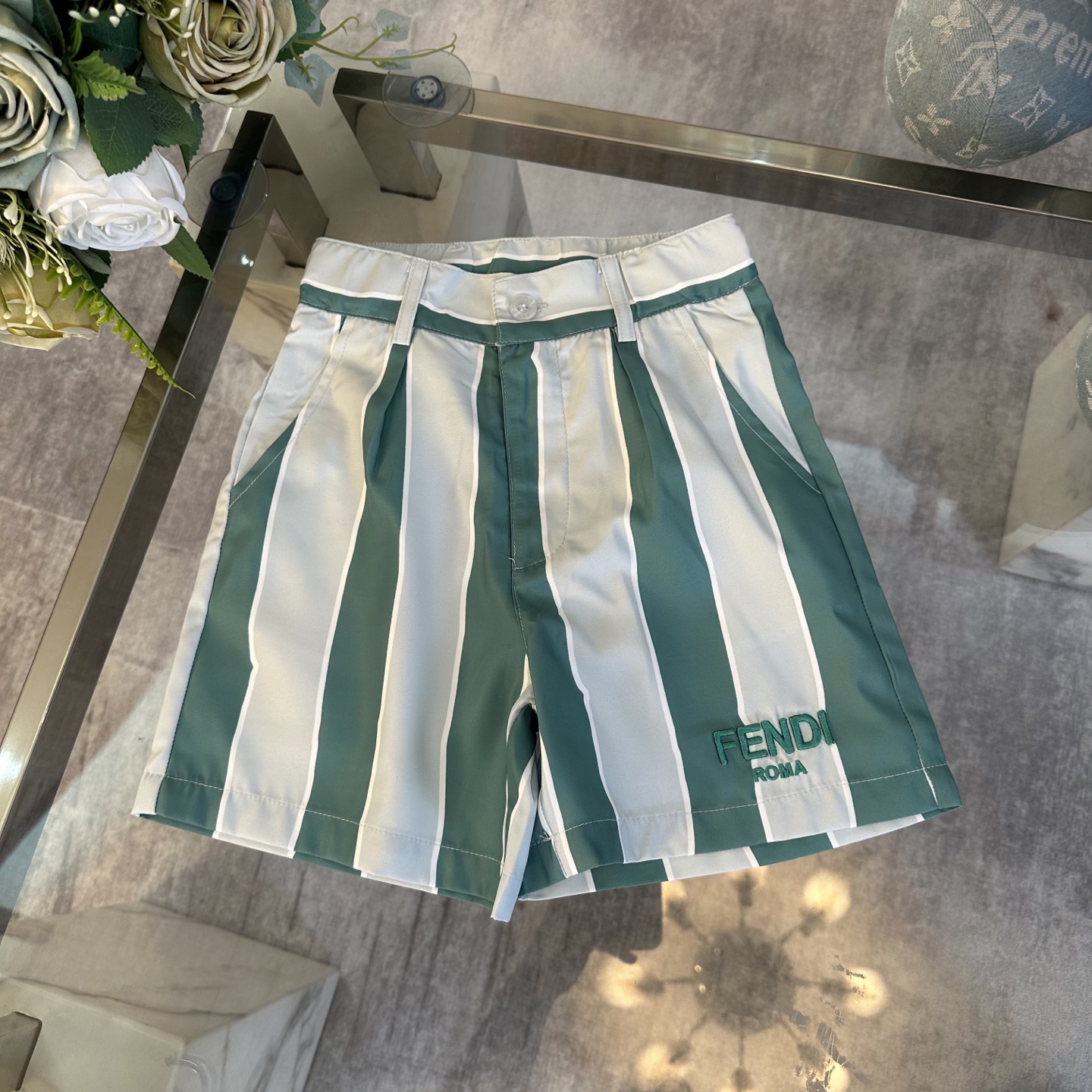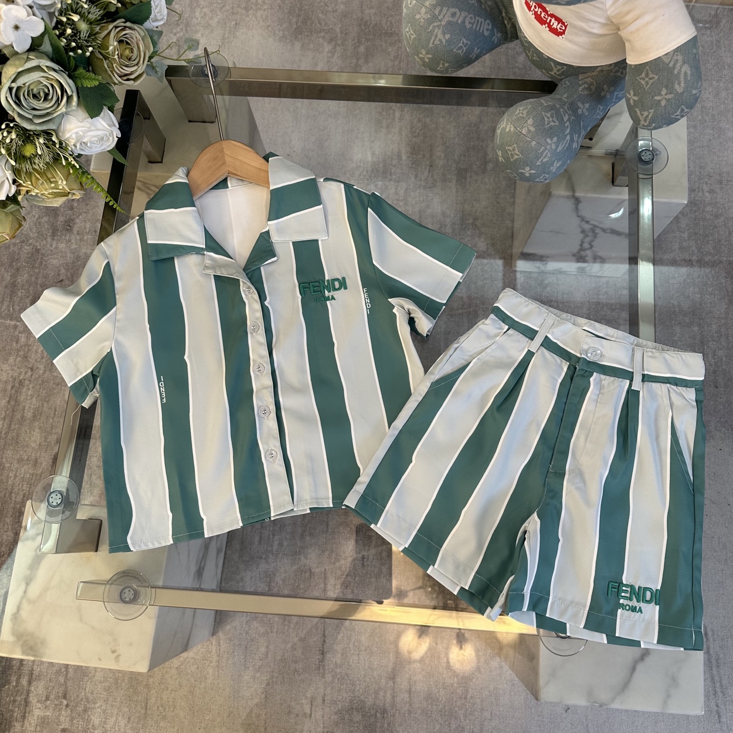 Fendi, high-end children's wear, private suit, stripe color polo shirt ? waist shorts, show white color and pure and fresh, languid is lazy vacation wind, custom stripe color fabrics, upper body comfortable, good-looking, code number: 100/110/120/130/140/150 cm