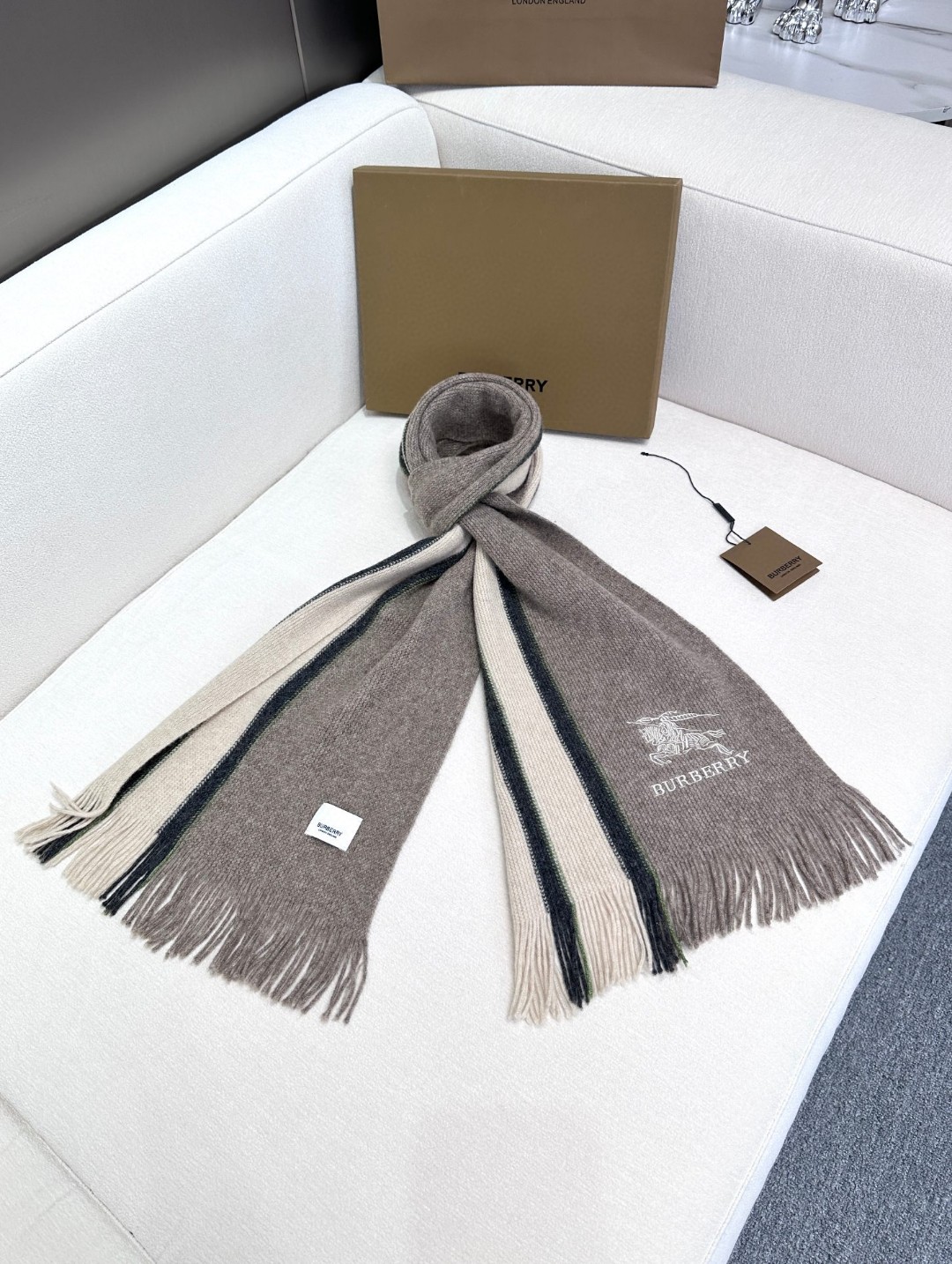 New arrivals! In 2024, unisex styles, 100% pure cashmere Burberry at the same counter, high-end cashmere knitted scarves!