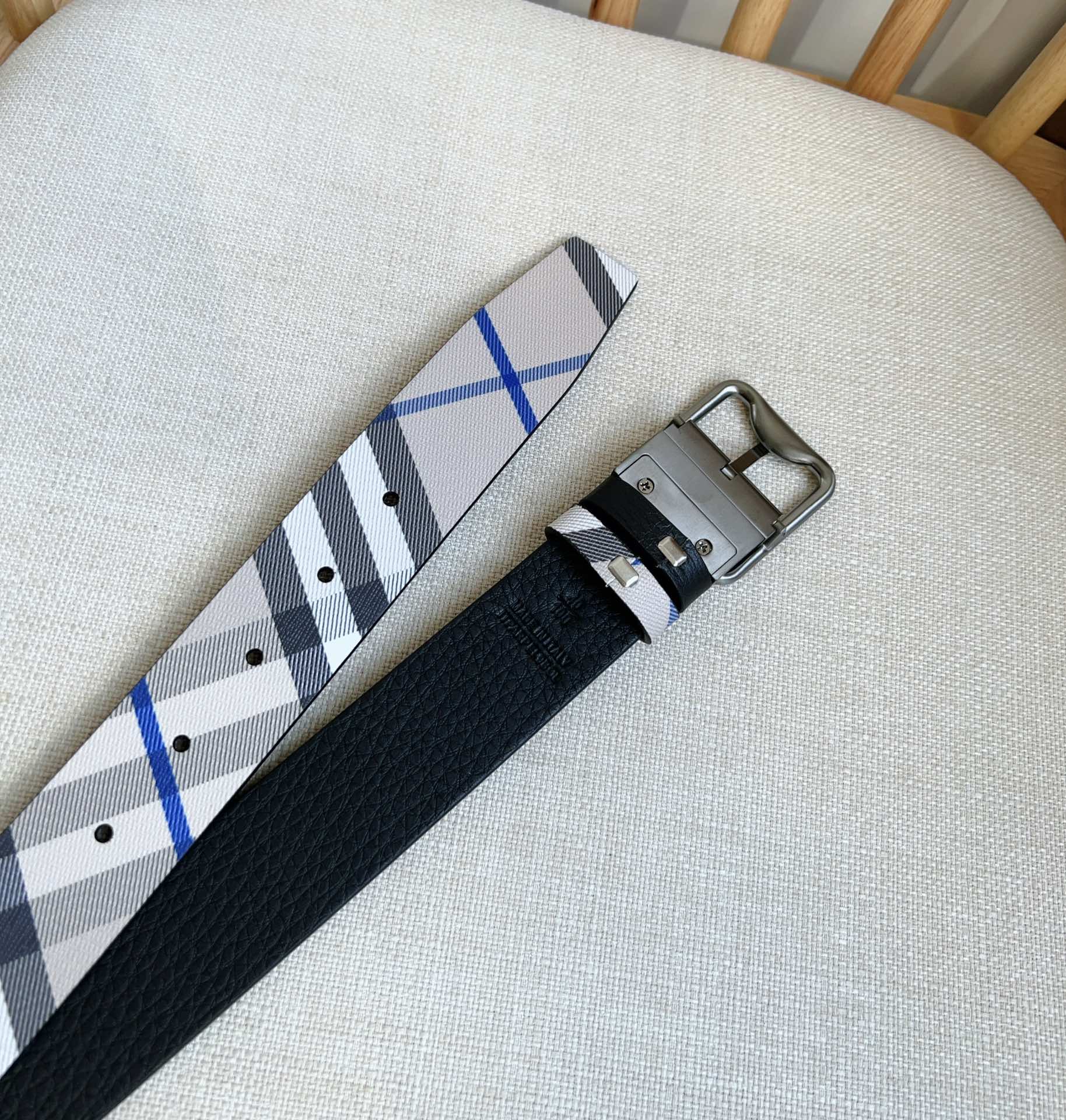 Burberry store at the same time NEW ???? double-sided two-use belt MADE in Italian workshop with palladium-plated B-shaped buckle, one side decorated with Burberry check and the other side with grain calfskin material belt width :3.5cm elegant and simple