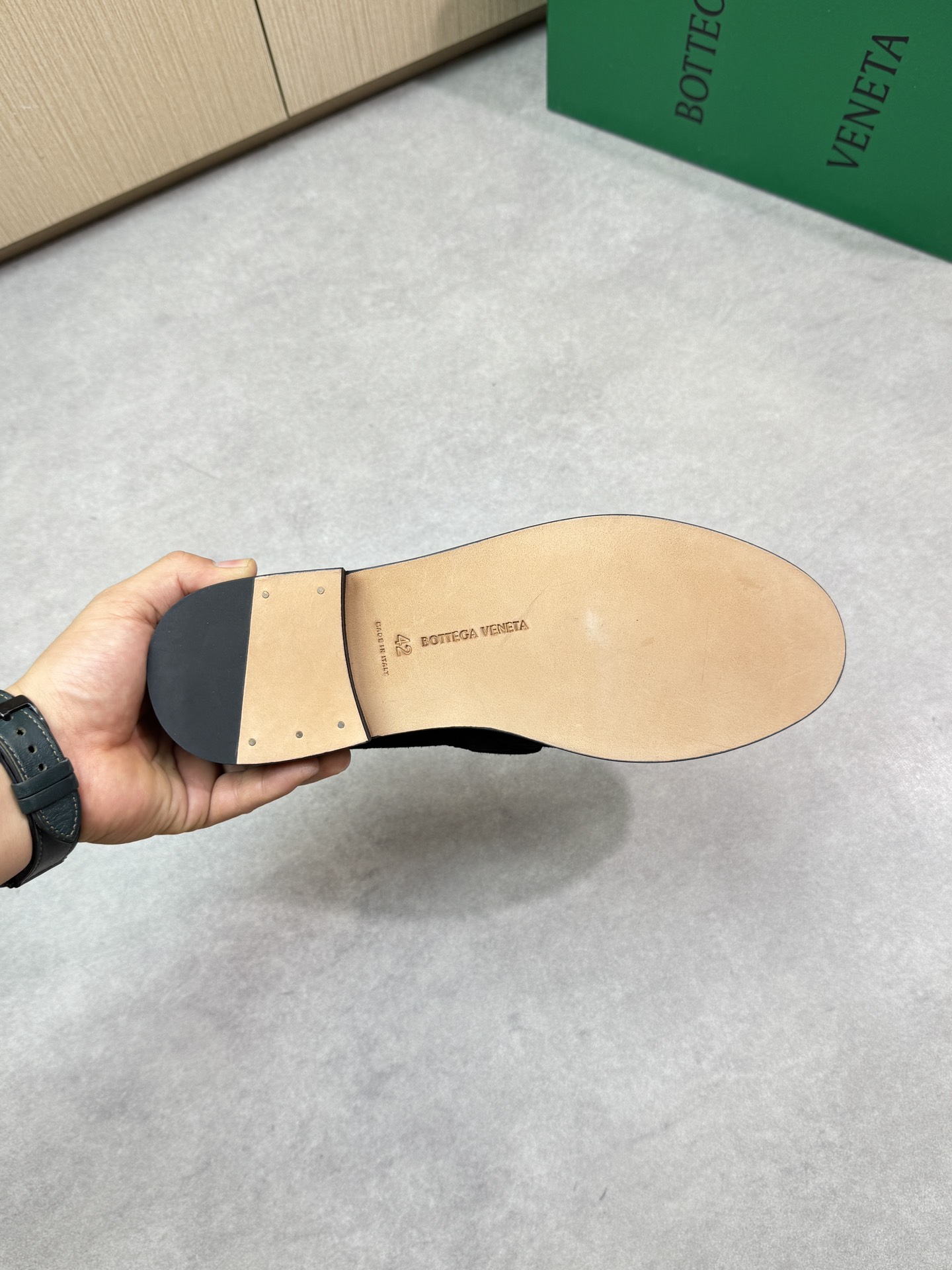 - Inside: Water-dyed sheepskin