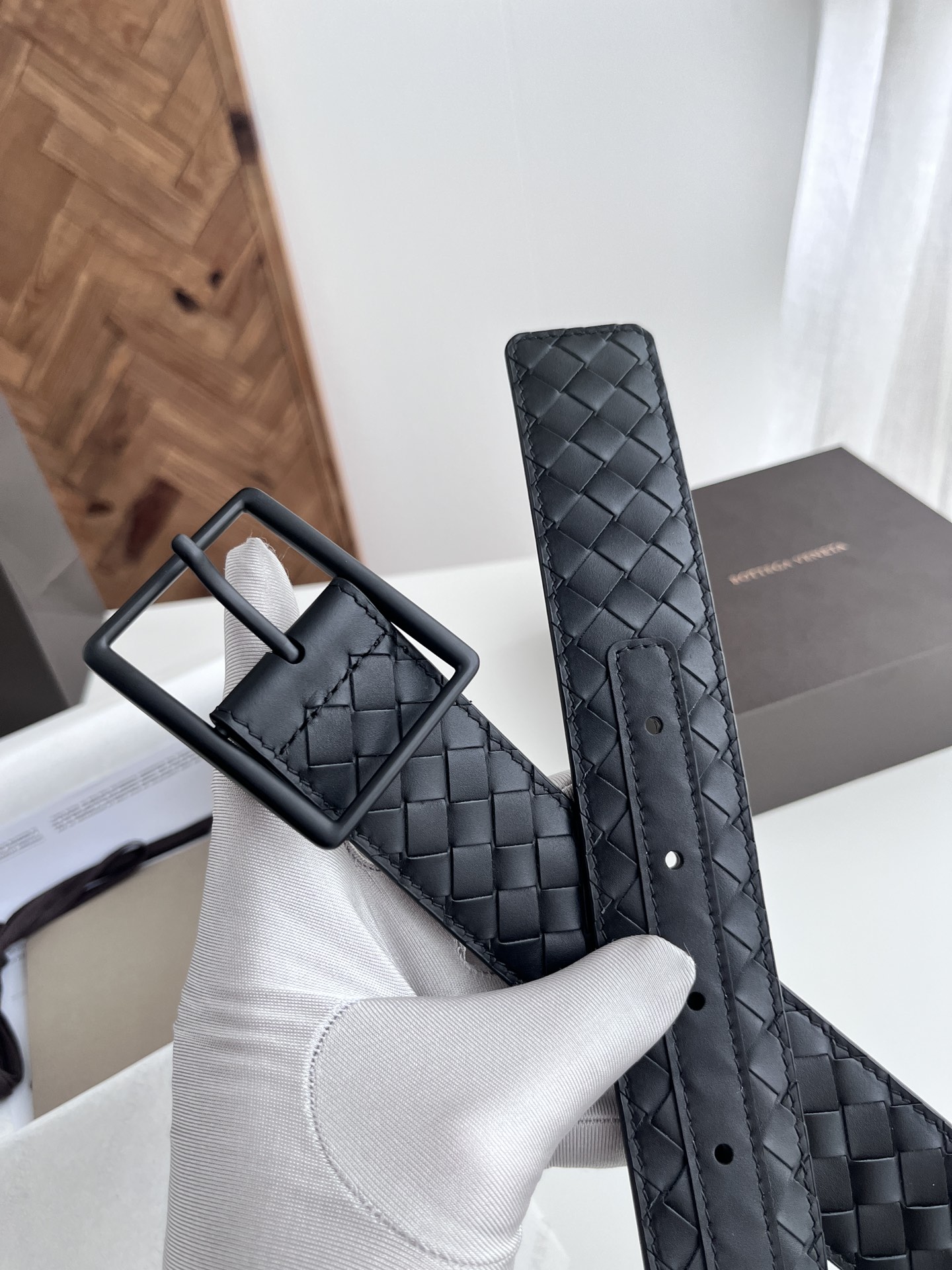 BV top-quality 2024 new wide men's belt, handcrafted with small checkered intrecciato piccolo braided Italian calfskin, paired with vacuum gun-colored pin buckle holes. Newly designed belt width 4.0cm. Color: black