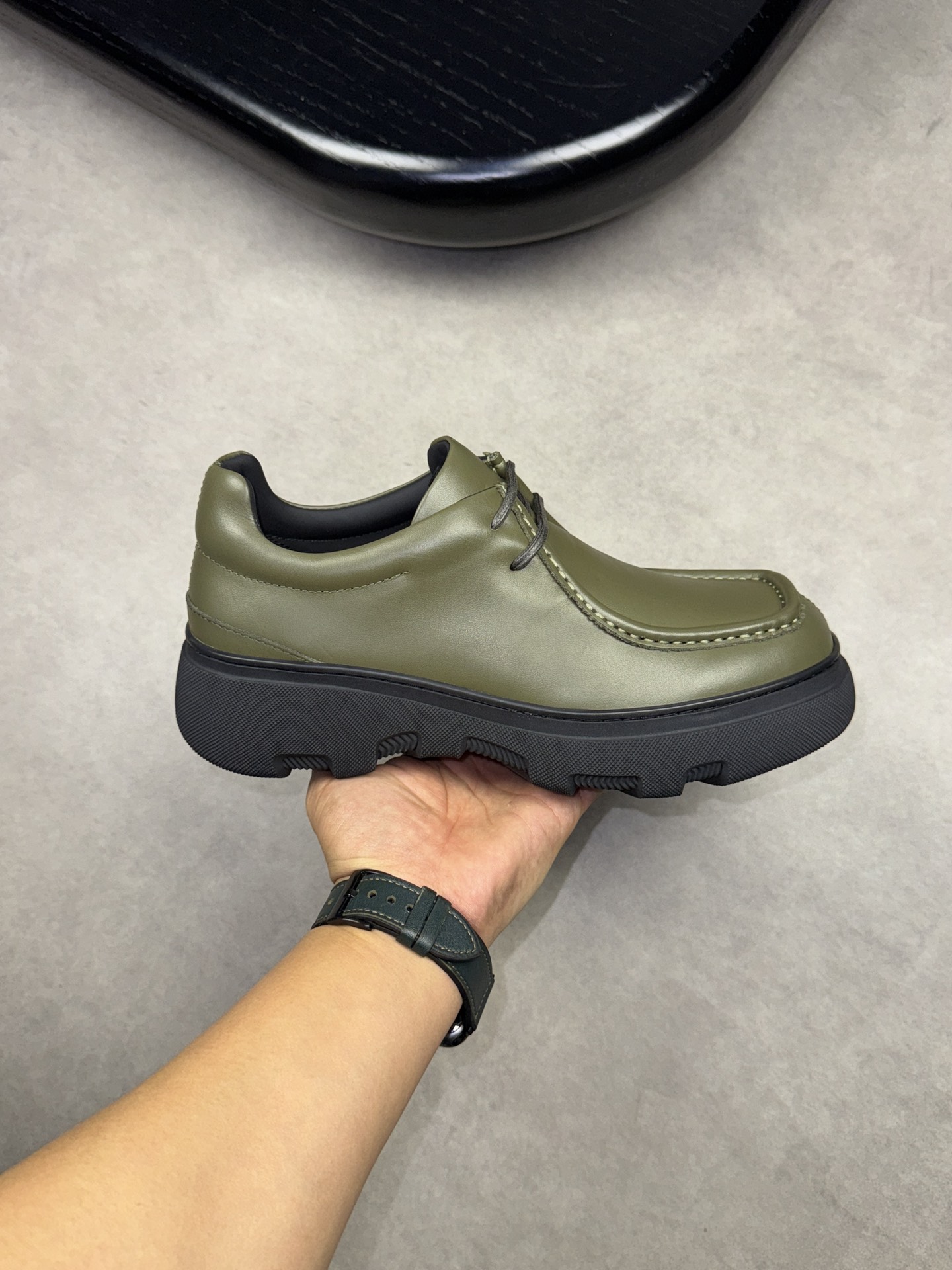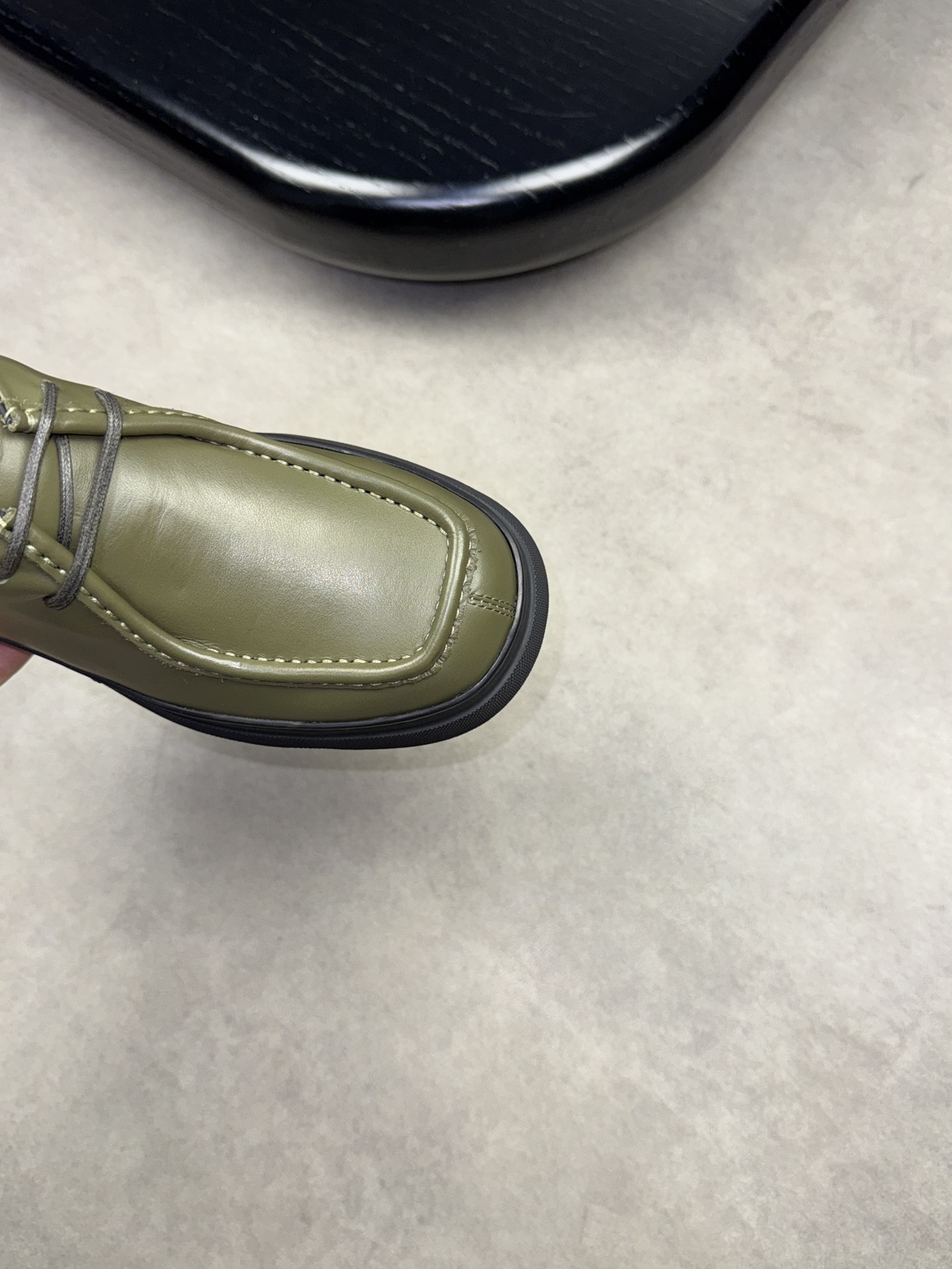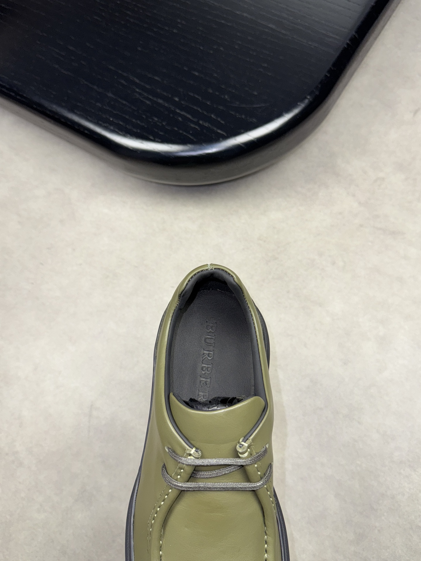 - Upper: ?? fleece calfskin with hand-stitched marking