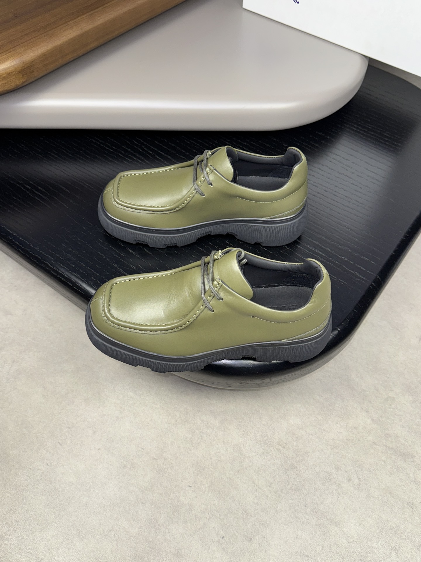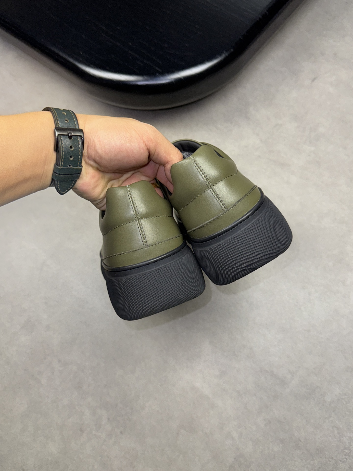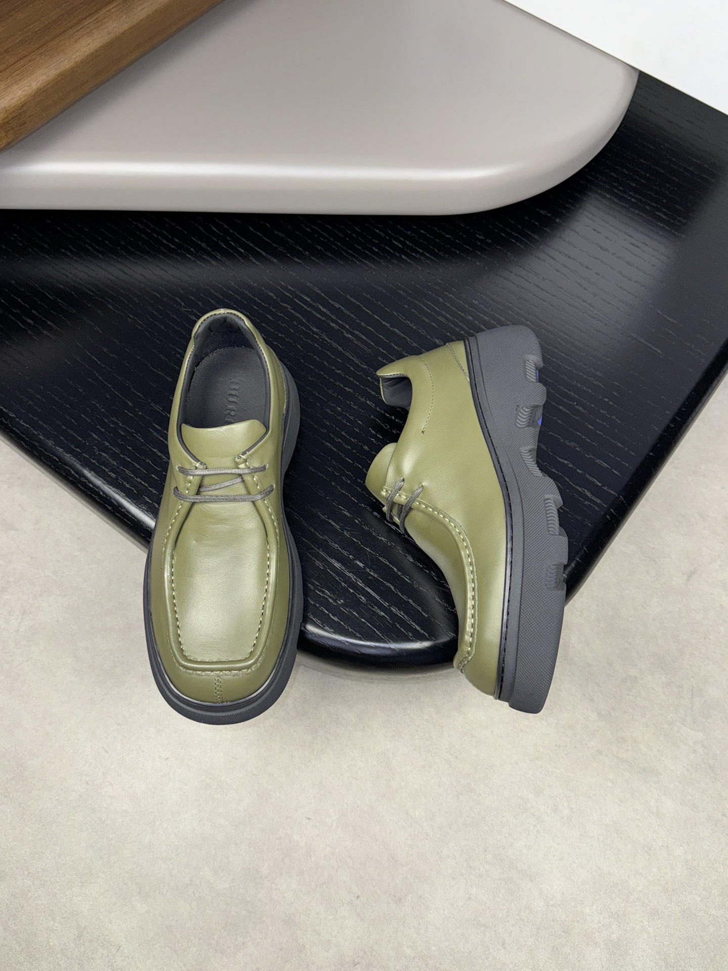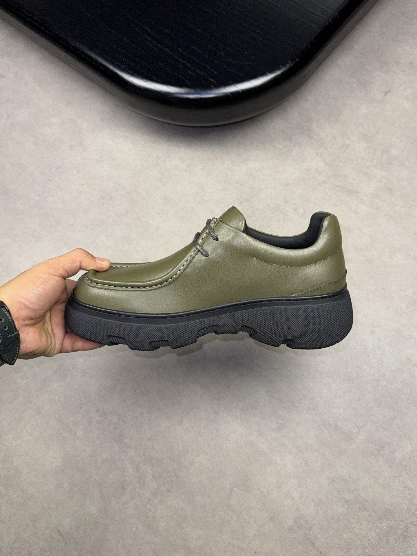 - Upper: ?? fleece calfskin with hand-stitched marking