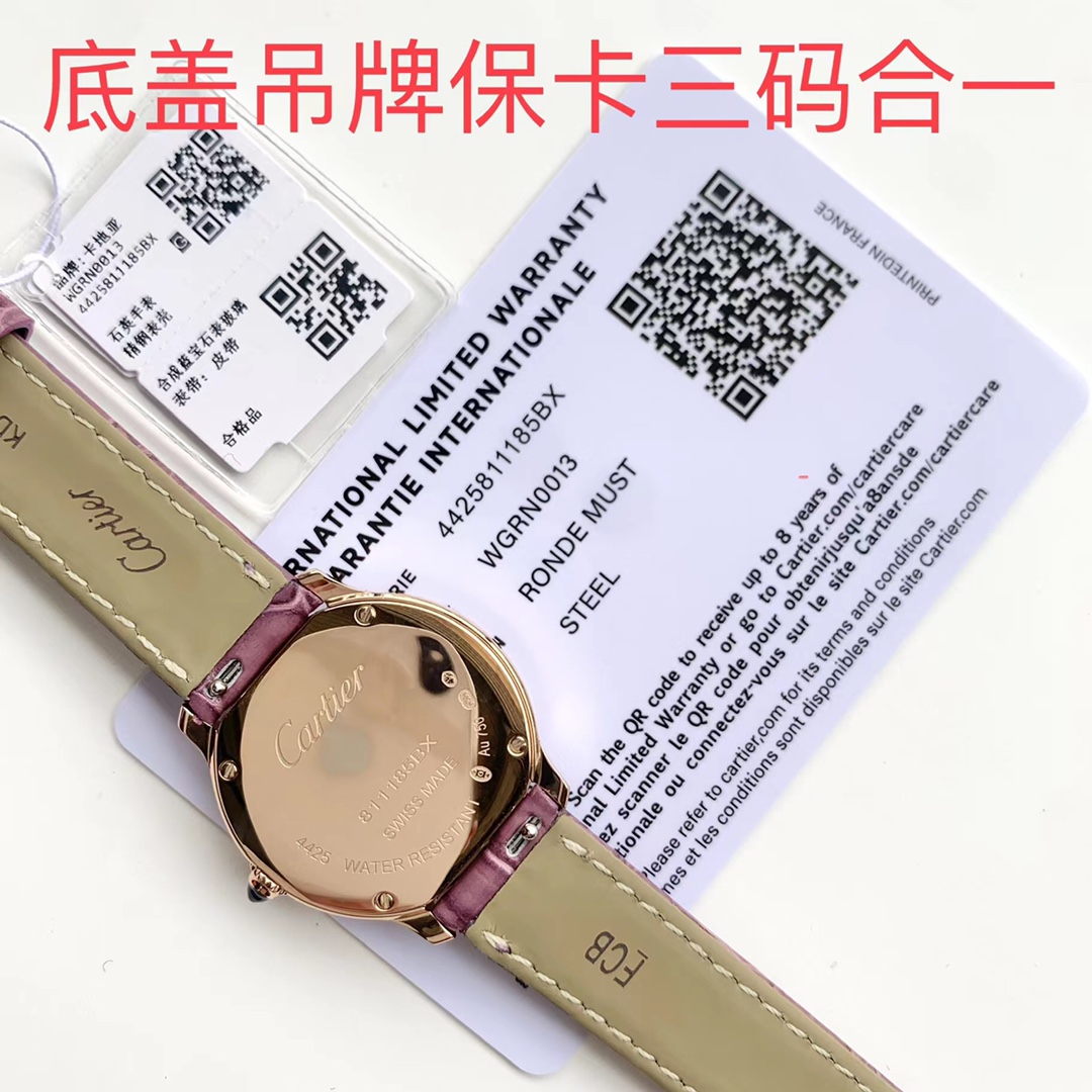 Cartier RondeLouis quartz rose gold alligator leather strap watch 2022 Cartier London New Collection is newly launched, top-notch original quality! Dial diameter: 29mm, thickness: 7.54mm, water resistance for daily use: 3 bar (approximately 30 meters), 18K gold version, one watch with one certificate. The warranty card features a three-digit consistent original quartz movement of Cartier 157, ensuring accurate timekeeping. The strap is made of imported American alligator leather ?? with original pin buckle. Comfortable to wear and with excellent texture! Among the many collections of Cartier, the London collection inherits the round shape, presenting the classic timepiece aesthetics of Cartier with Roman numeral hour markers, sword-shaped blue steel hands, a cabochon crown and a track minute ring. Finally, I'd like to mention that this product is top-notch in terms of workmanship, accessories, materials and details. It's not a market currency and can be compared freely. If you are not satisfied, you can return or exchange at will! Four-color stock available, with a full set of packaging. The first choice for giving as a gift or keeping for yourself!