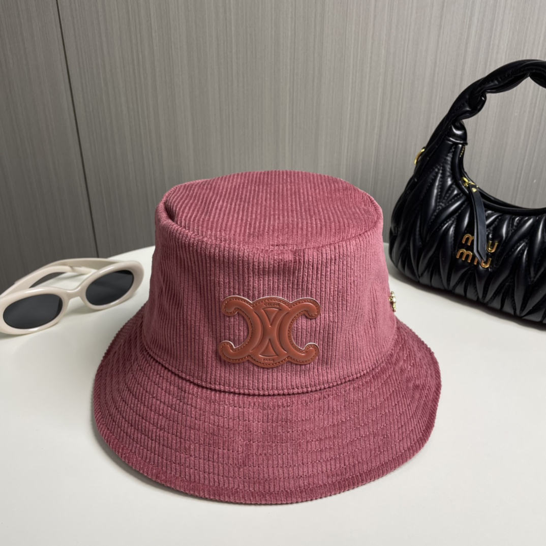 ?? CELINE high version official website latest style ?? Corduroy vertical fisherman hat for women, autumn/winter streetwear brand versatile retro trend