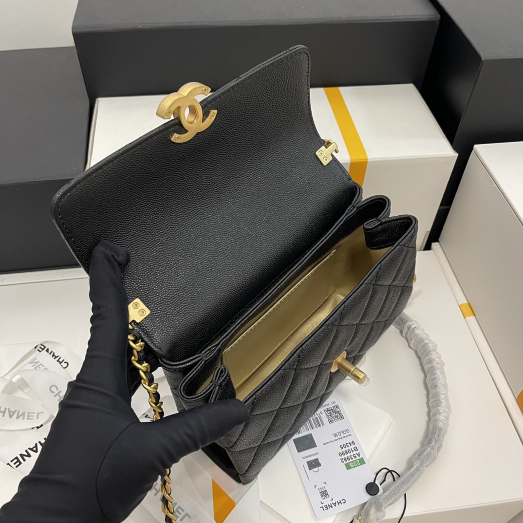 Chanel 23s Carryme trumpet Finally, I mentioned this 23sscarrymemini today. It looks very luxurious in hand. The mini is 19cm in size, and there is also a smaller one that is 22cm. It can be carried by hand, slung diagonally across the body, or folded around on one shoulder This cap bag combines the advantages of cocohandle and cf, and is really suitable for a sweet and cute girl like Teacher Ye Lychee grain cowhide combined with aged hardware sounds very durable! Size: 13*19*7.5cm Model: AS3982