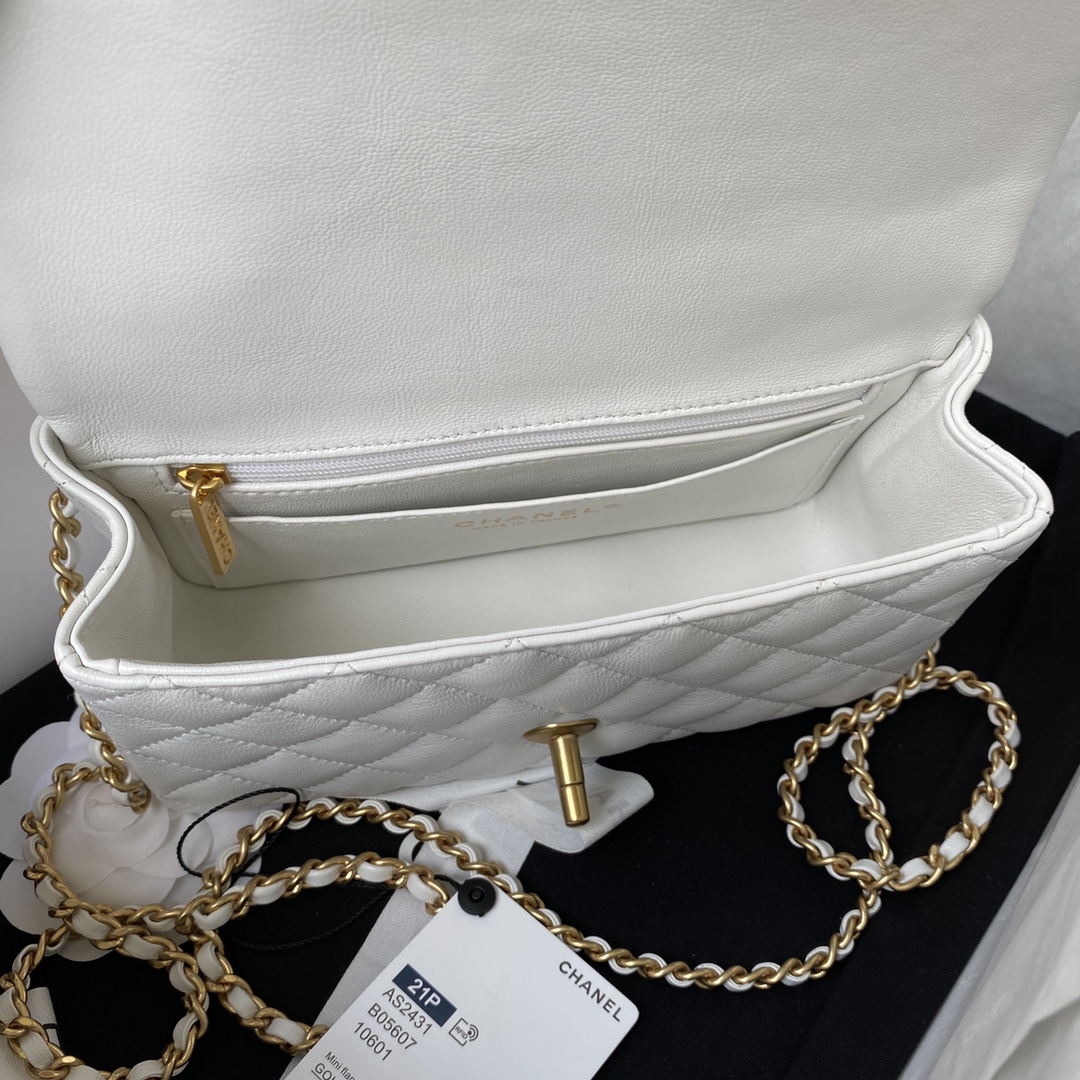 ??Chanel 2021 Mini CF handle AS2431 Classic diamond-shaped lid bag with exquisite classic chain to handle, fine sheepskin: finishing handbag, standing out, timeless ?? elegance. Dimensions: 20x12x6cm