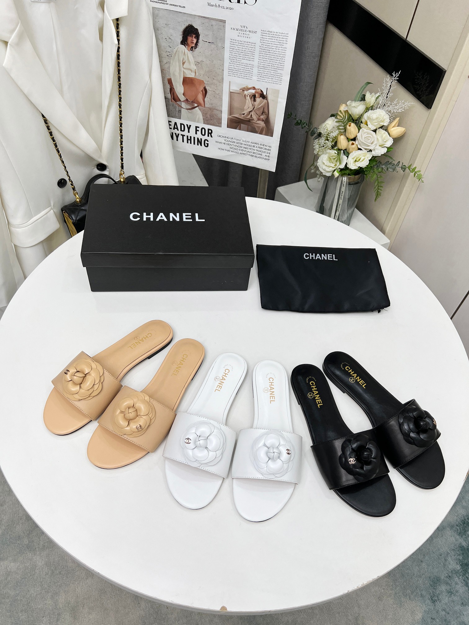 Factory price ???? Women shoes factory chanel Chanel 2024 new slippers ???? Official website counter, fabric sheepskin, lining sheepskin, foot pads goatskin, 3 colors to choose, 35-42 size, Chanel
