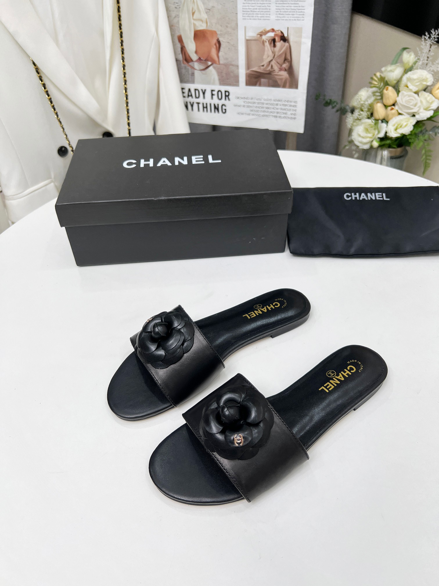 Factory price ???? Women shoes factory chanel Chanel 2024 new slippers ???? Official website counter, fabric sheepskin, lining sheepskin, foot pads goatskin, 3 colors to choose, 35-42 size, Chanel