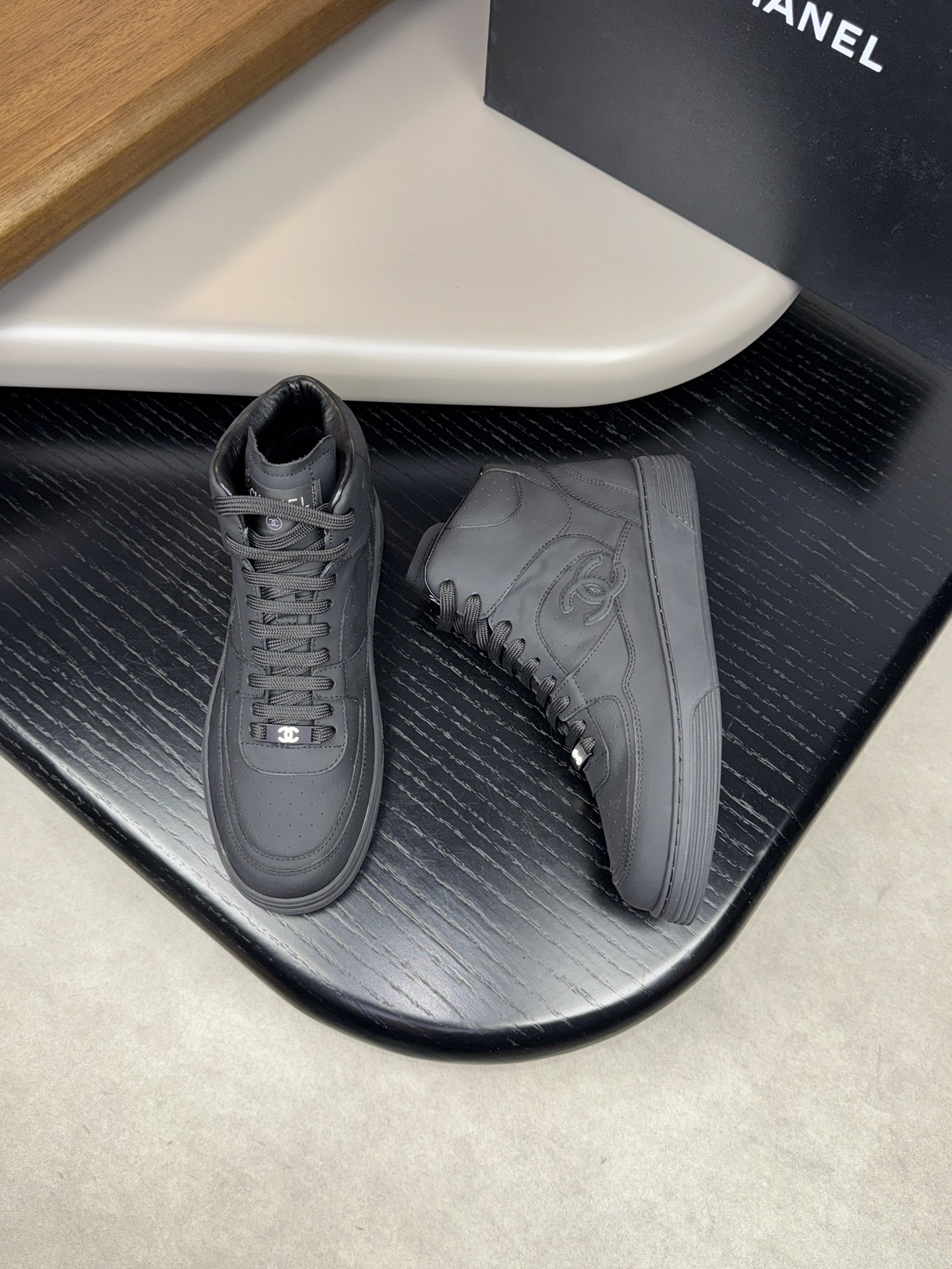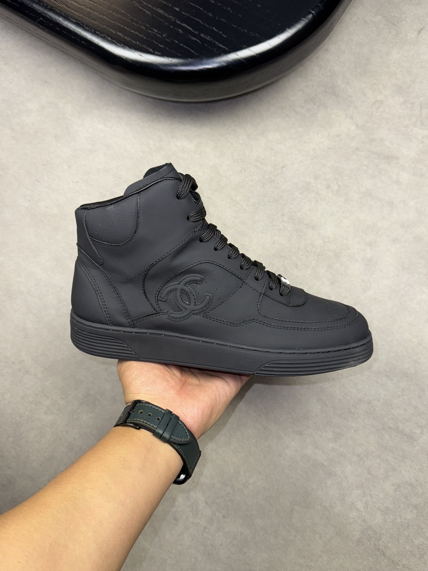 CHANEL #4009?????? - Premium quality ORIGINAL single ?????? casual high top sneakers - Upper: ?? silk calfskin with brand pattern stitching on the upper - Inside: Water-dyed sheepskin - Outsole: Ultra-light TPR