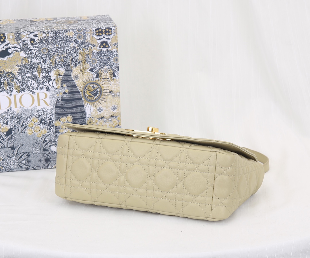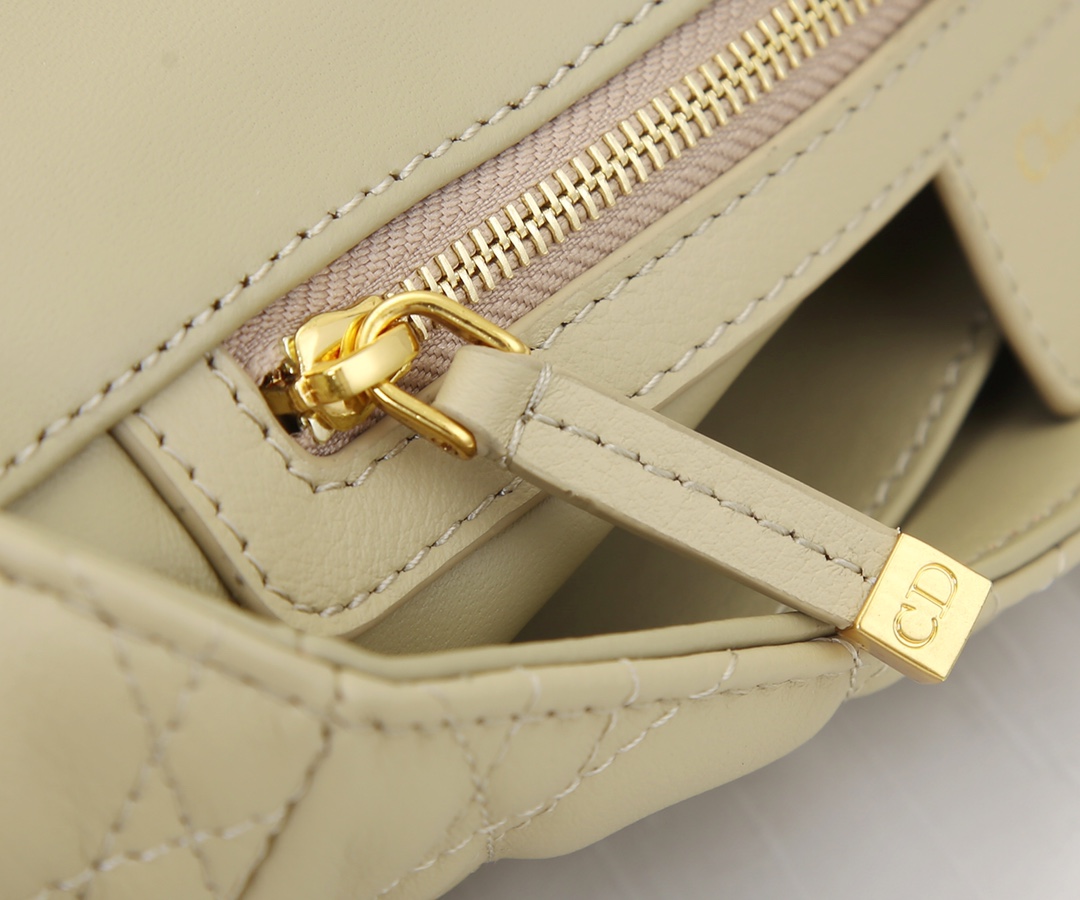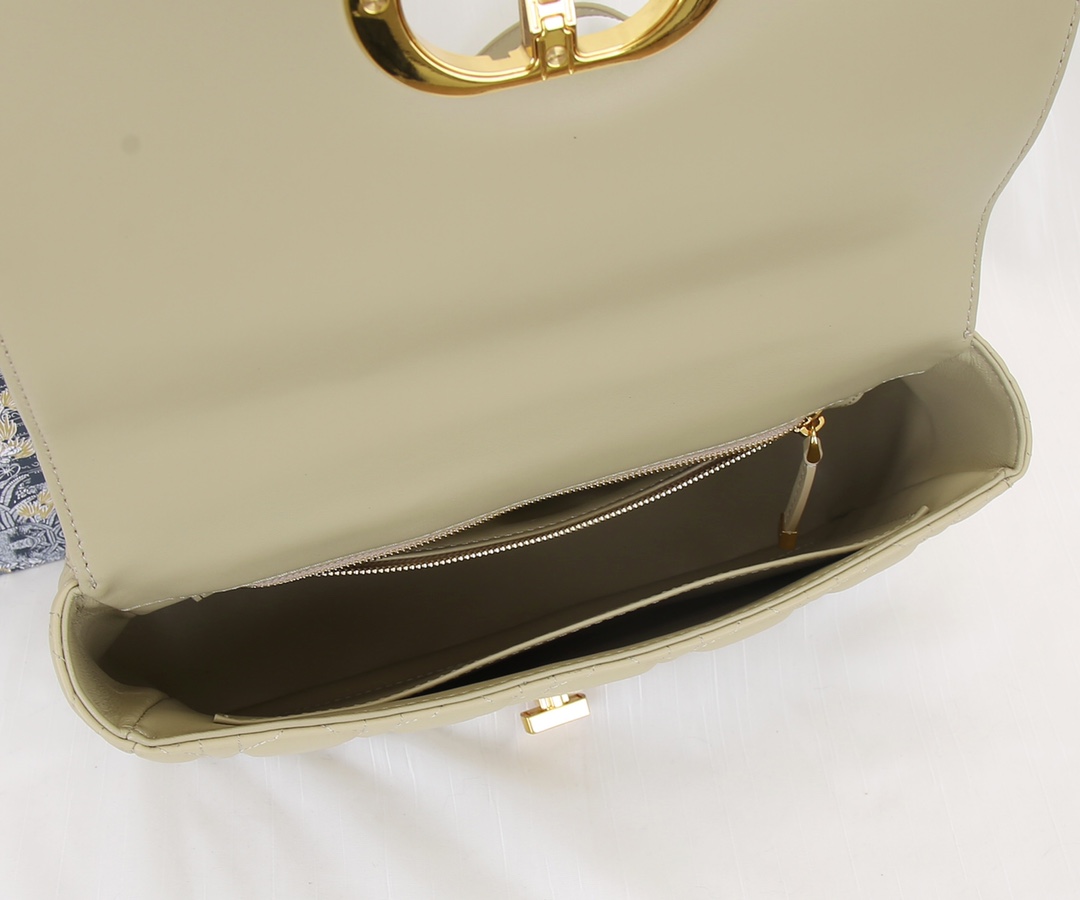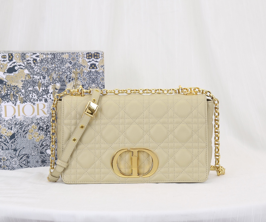 The interior of the Dior medium-sized crossbody bag is made of imported sheepskin The Dior Caro handbag is elaborately crafted from apricot cowhide and decorated with the signature rattan checkered stitches. The material is soft. The flip cover is decorated with a retro gold finish metal "CD" clasp, inspired by the seal of Christian Dior perfume bottles. The small-sized style comes with a detachable signature "CD" chain shoulder strap, which can also be replaced with an embroidered wide shoulder strap for a more elegant and fashionable look. Whether it's a daily look or a dinner party Dimensions: 25.5x15.5x8CM