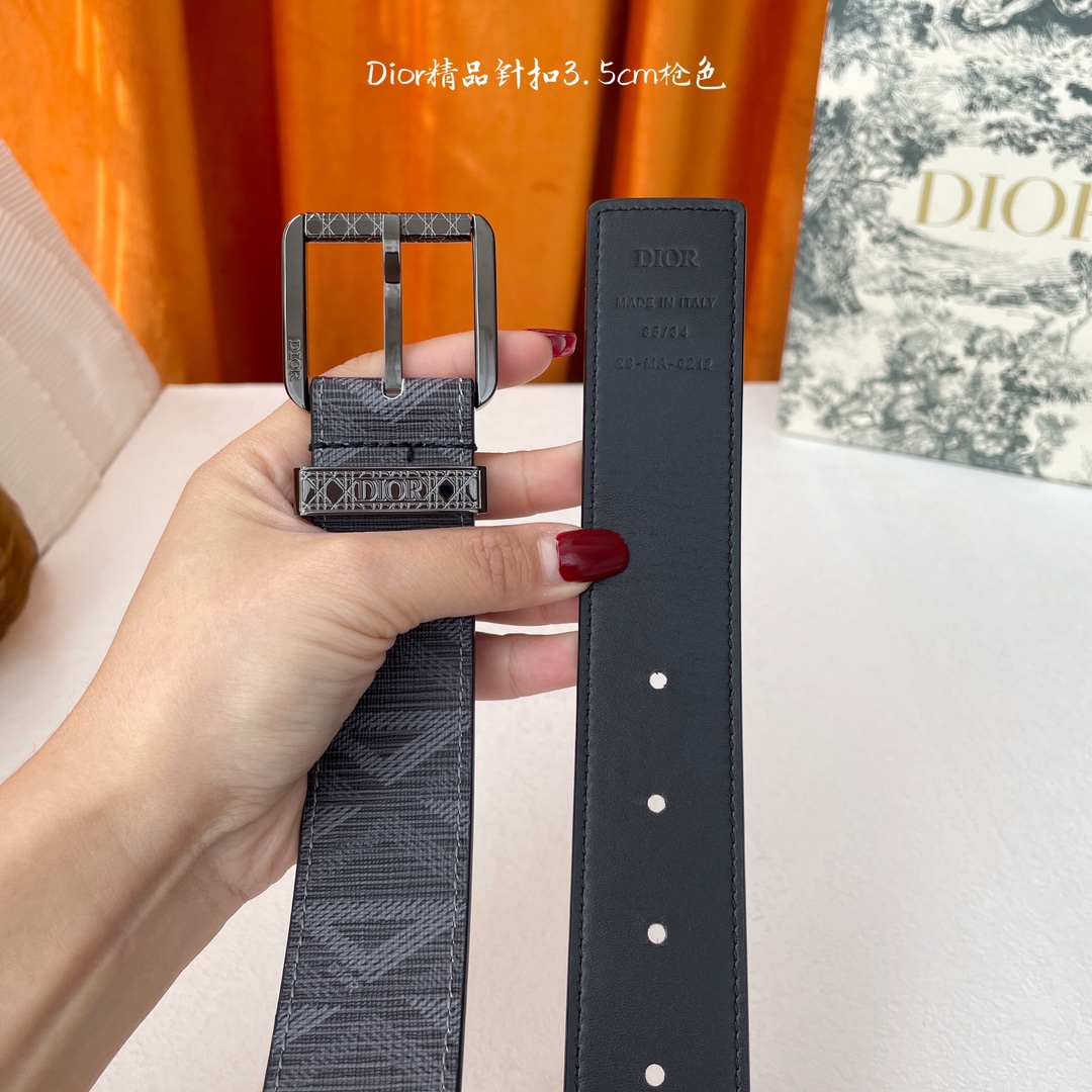 The Dior men's belt features an embroidered letter design with a black grainy cowhide lining and a metal-clad brass buckle engraved with the "DIOR" logo, ingeniously enhancing the style. The belt is 3.5cm wide