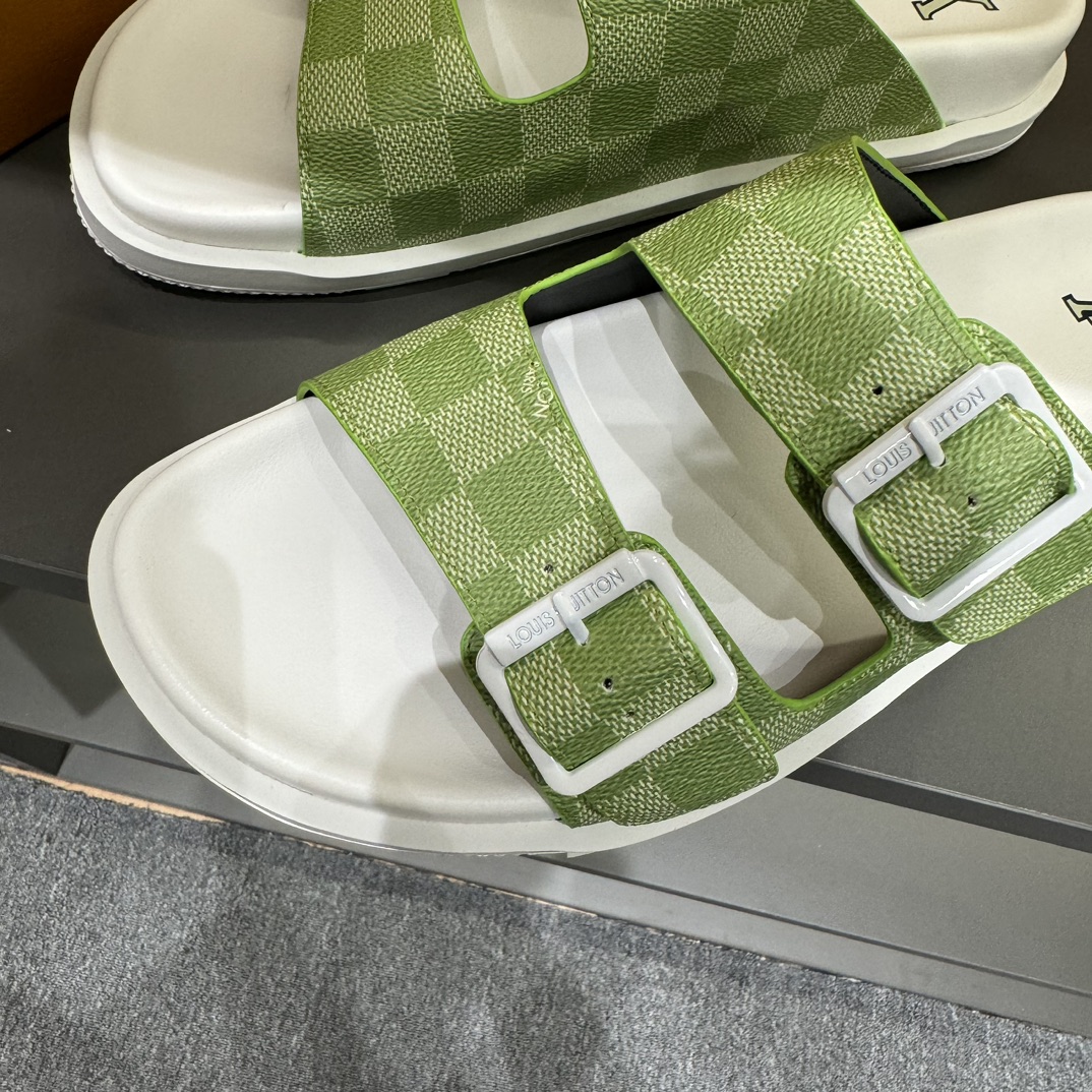 Number #2002?????? 38-45 The latest series of Oblique thick-soled slippers and sandals from Louis Vuitton This LV H-Town sandal, originally purchased, developed and produced, pays tribute to the classic logo of the sporty style and showcases LV's haute couture spirit. Crafted with black rubber, it features a beige and black Oblique printed upper, complemented by matching cowhide leather details to enhance the style. The rubber sole incorporates various elements and is decorated with the Dior logo, making it more exquisite and highlighting a futuristic style. It can be worn with shorts or jeans Accompanied by exquisite packaging at the counter ???? ?? Fabric: original custom imported silk leather ?? Lining: imported soft sheepskin lining ?? Sole: original mold ultra-light foam material ?? Base thickness: 4CM