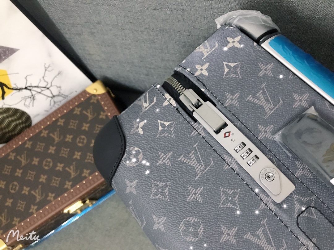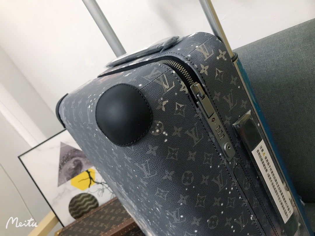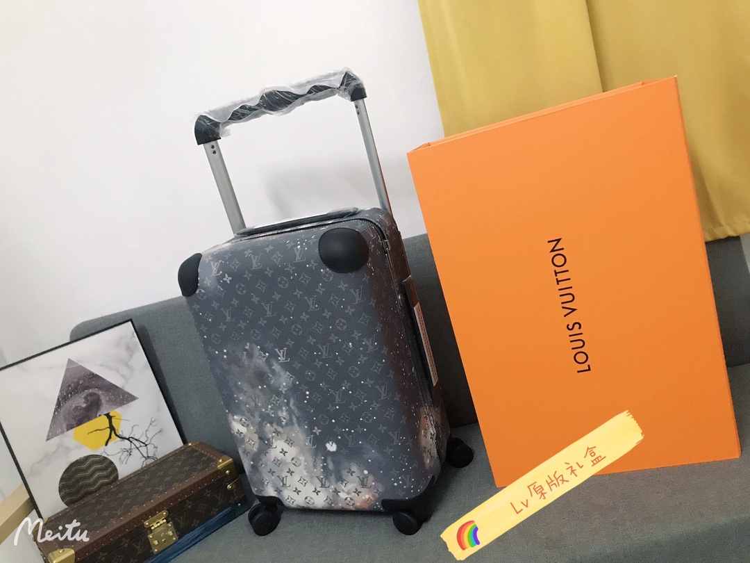 GF4343FB The all-new Horizon suitcase revolutionizes Louis Vuitton's legendary classics with individual creativity, embellishing the iconic Monogram canvas with travel stickers and retracing the brand's traditional luggage design style. The leather corner protection and the oversized external handle enrich the smart details, creating an elegant and practical travel companion. Detailed characteristics (Length