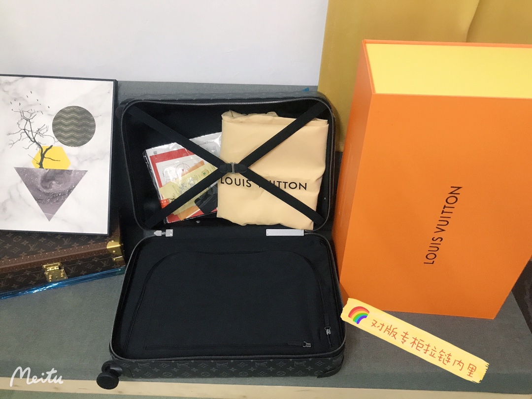 GF4343FB The all-new Horizon suitcase revolutionizes Louis Vuitton's legendary classics with individual creativity, embellishing the iconic Monogram canvas with travel stickers and retracing the brand's traditional luggage design style. The leather corner protection and the oversized external handle enrich the smart details, creating an elegant and practical travel companion. Detailed characteristics (Length