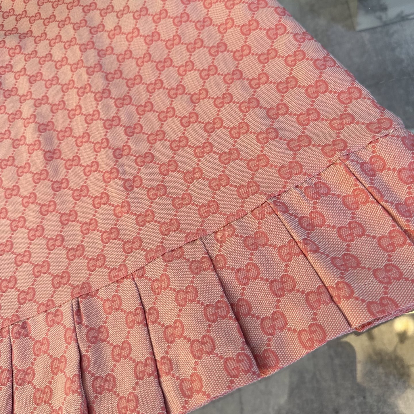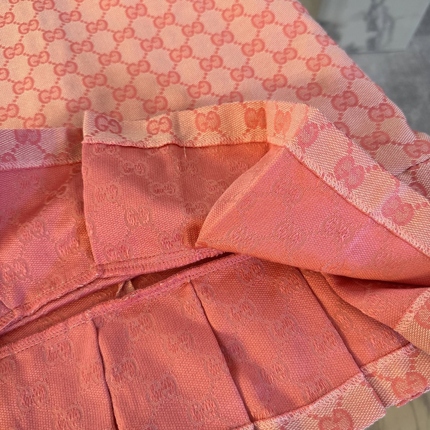 Gucci, high-end children's clothing, girls' dress, special custom carre color, every yarn is custom-woven and dyed, 80 cotton and 20 polyester fiber: super soft high-density jacquard fabric, ready-to-wear enzymatic water washing, making the fabric environmentally friendly and clean, and also making the fabric feel softer and more comfortable, friendly to the skin, looking beautiful when worn. Size: 110/120/130/140/150/160cm