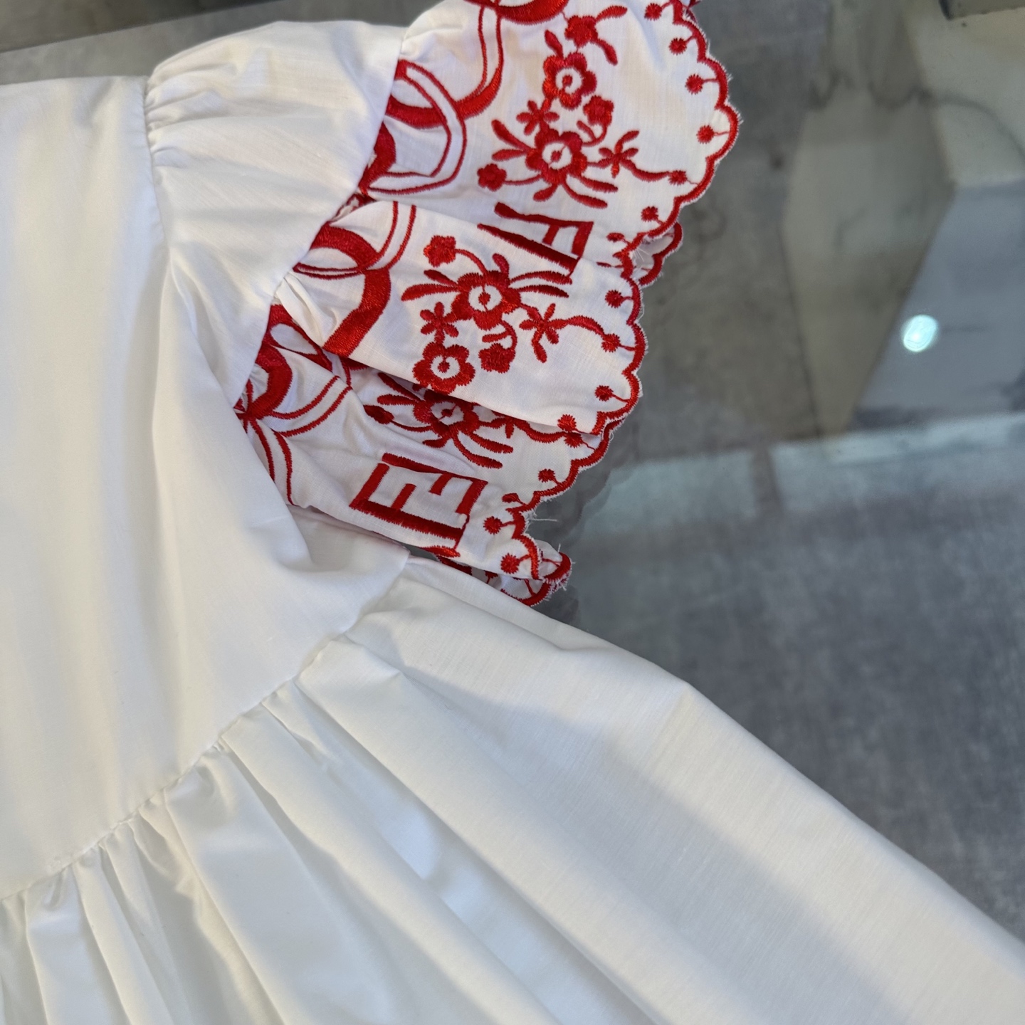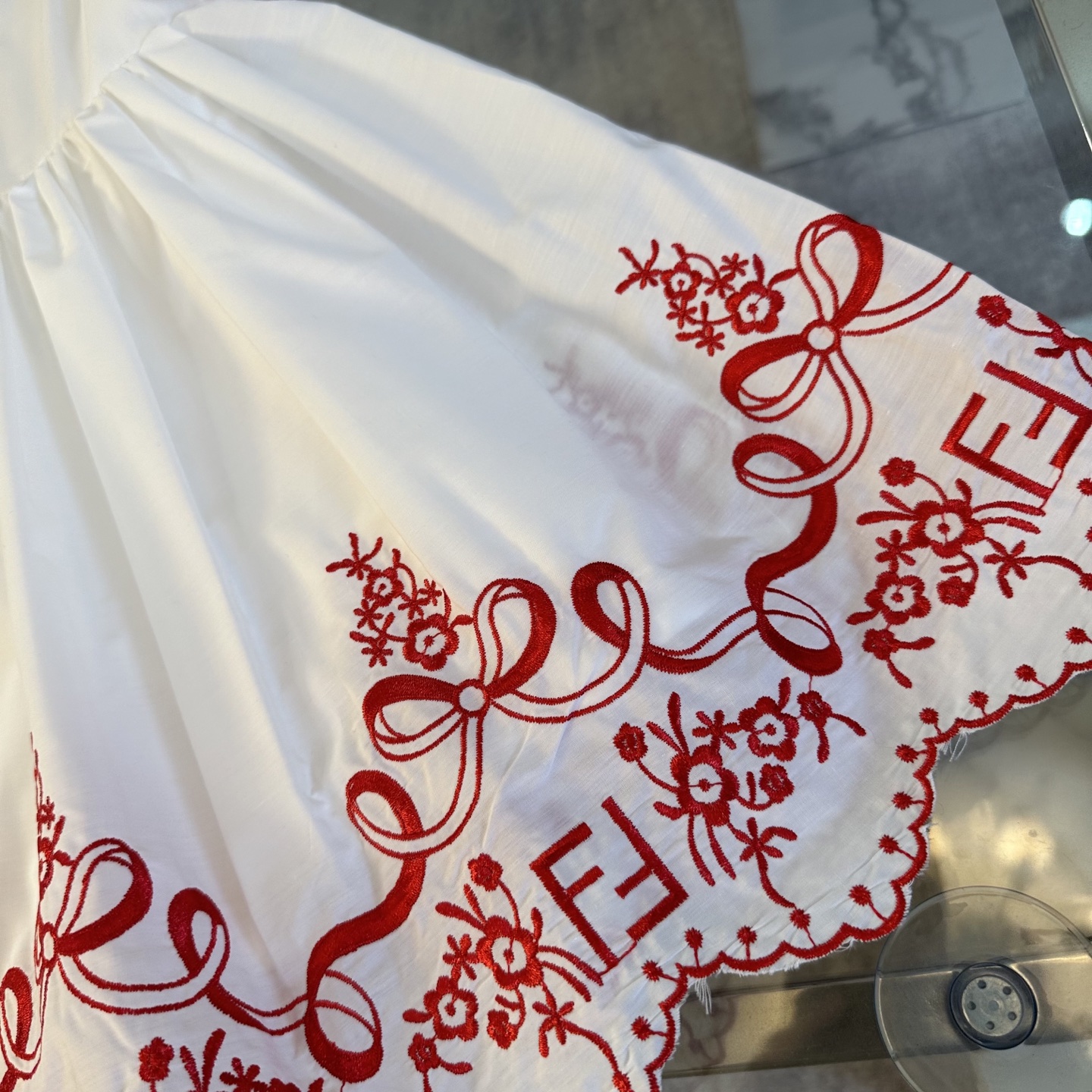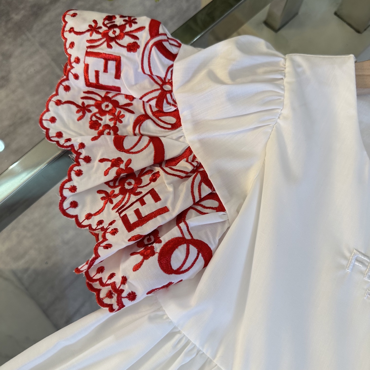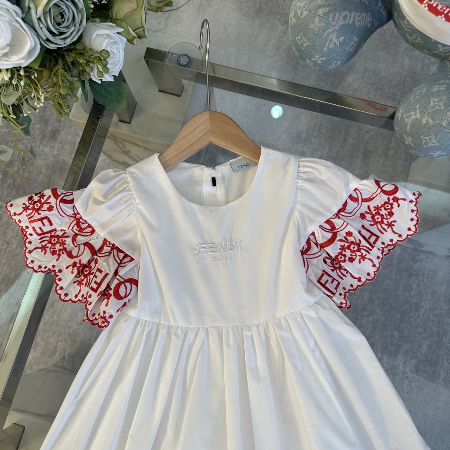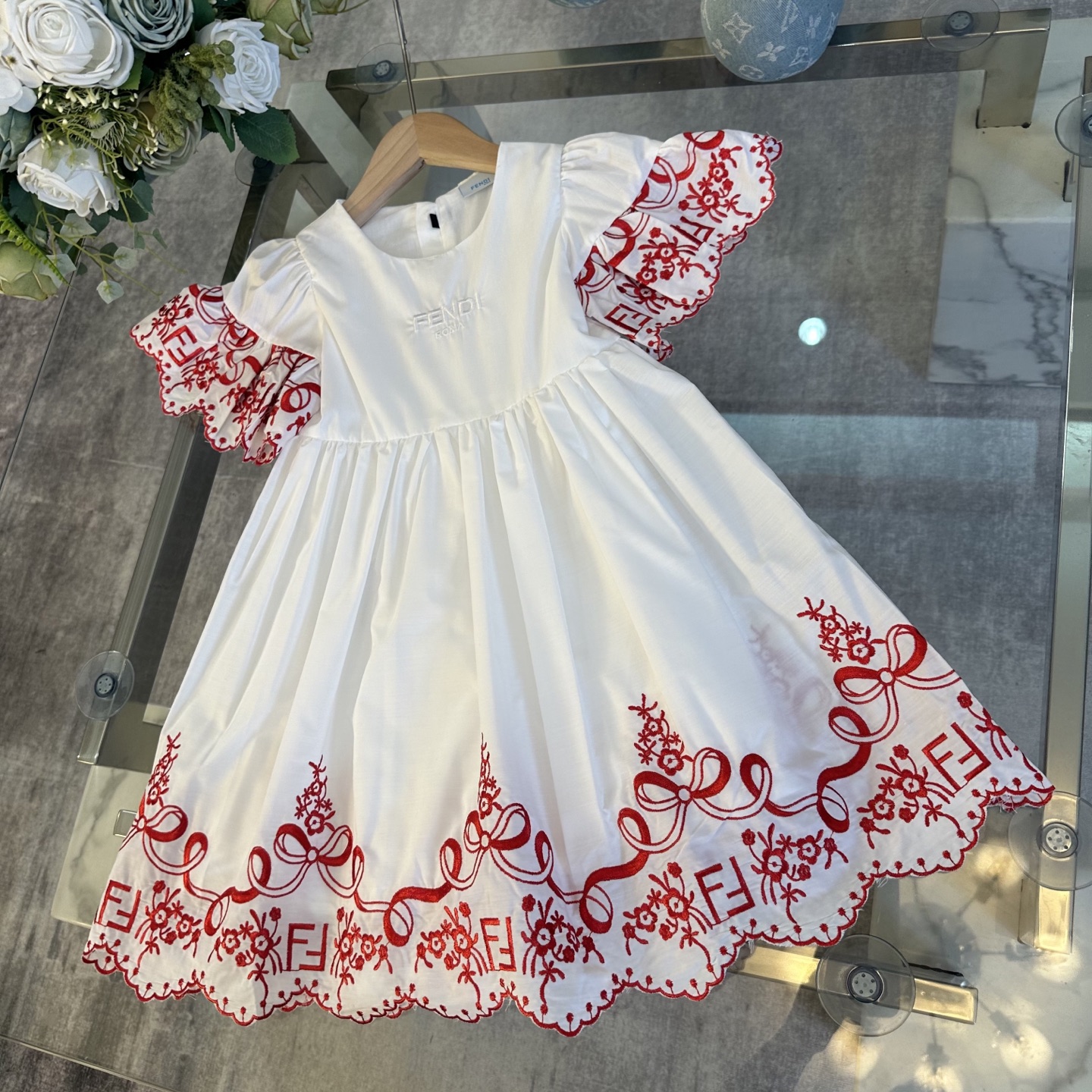 Fendi, high-end children's clothes, girls dress, double layer design, outer woven cotton, cotton, inner outer skirt FF embroidery ?? wine red color, body comfortable, good-looking, code number: 100/110/120/130/140/150 cm