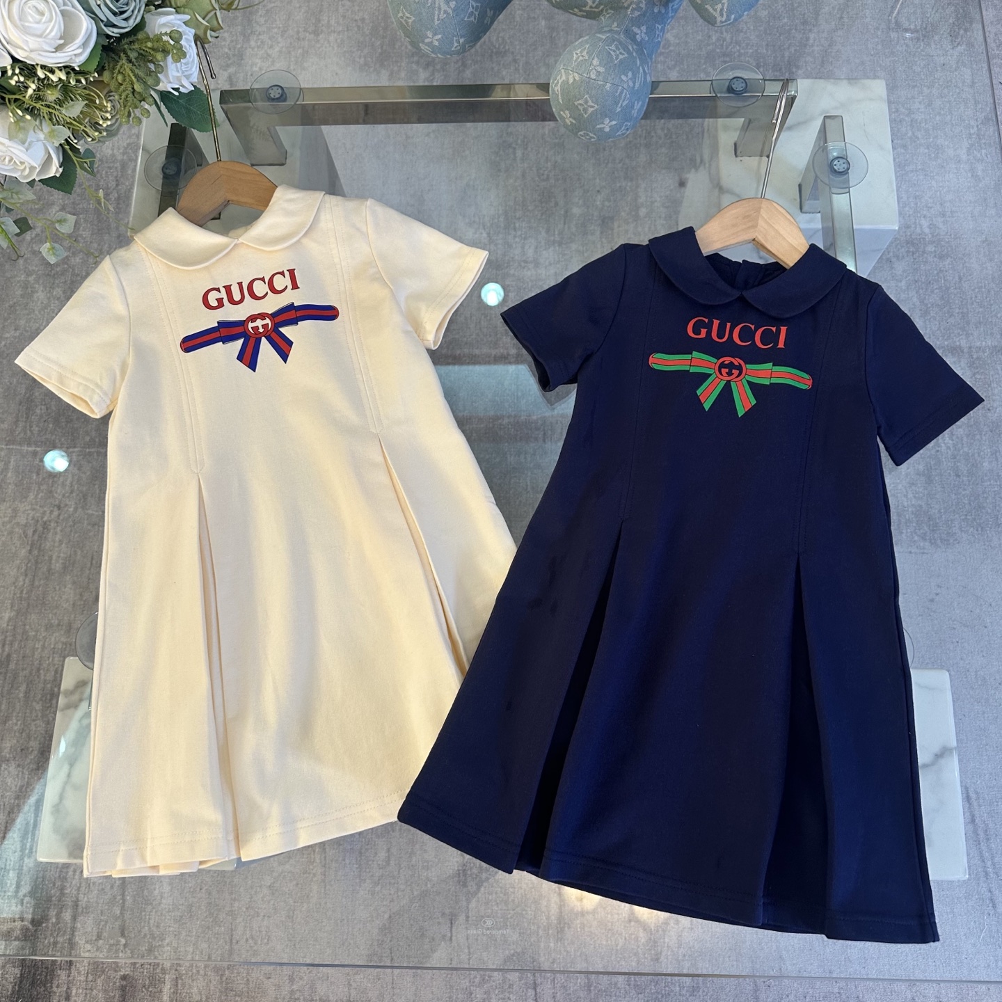 Gucci Gucci, high-end children's clothes, girls dress is small, the upper part of the bowknot is nifty and logo design Loose skirt is placed into the shape of the bookstore coffee stains with the wind, waist three-dimensional loop textured stretch and dye-in-the-wood, upper body comfortable, good-looking, code number: 110/120/130/140/150/160/170 cm