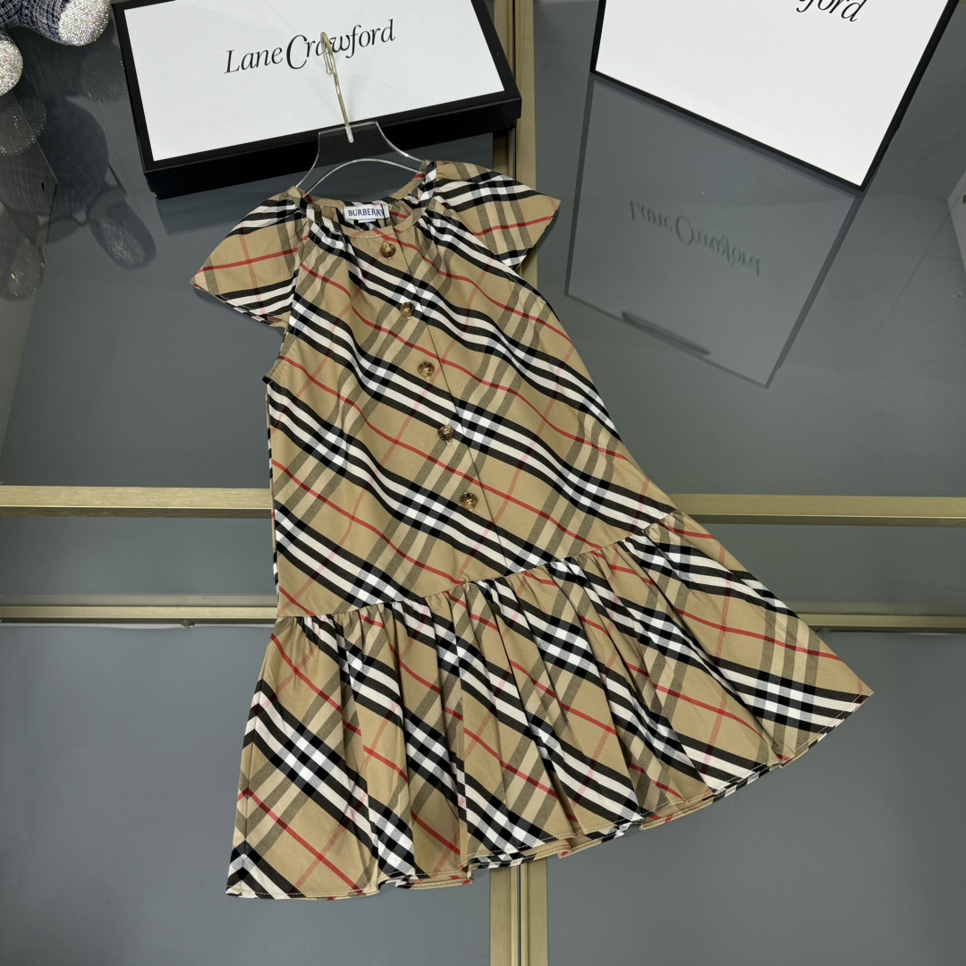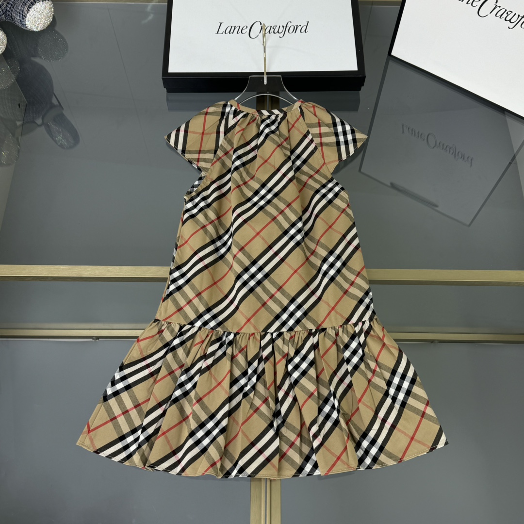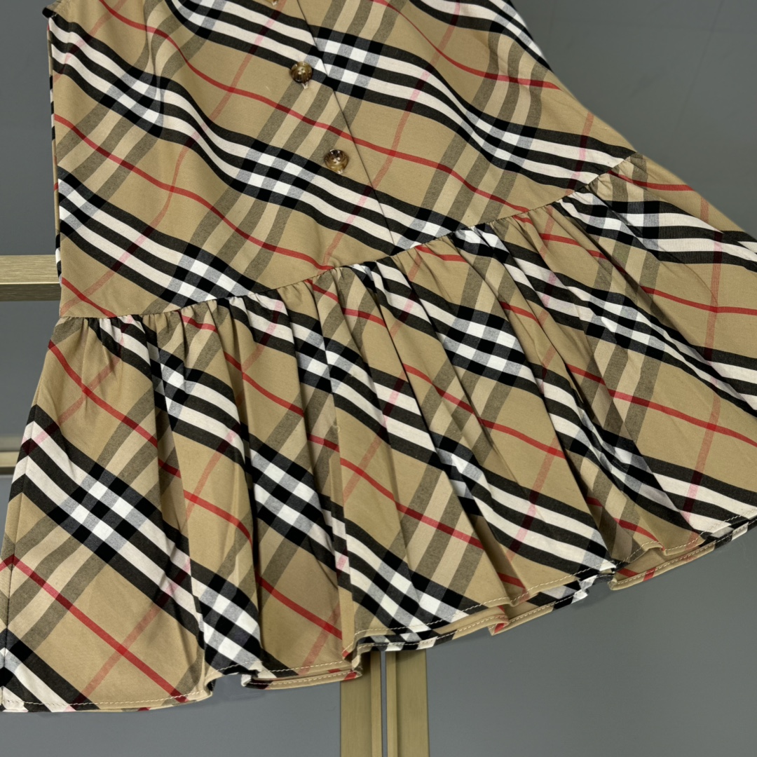Burberry, high-end children's wear, girls' dress, custom-made checked woven cotton fabric, symmetrical design, classic and elegant, never out of style, comfortable and good-looking to wear, size: 110/120/130/140/150cm, cut 160