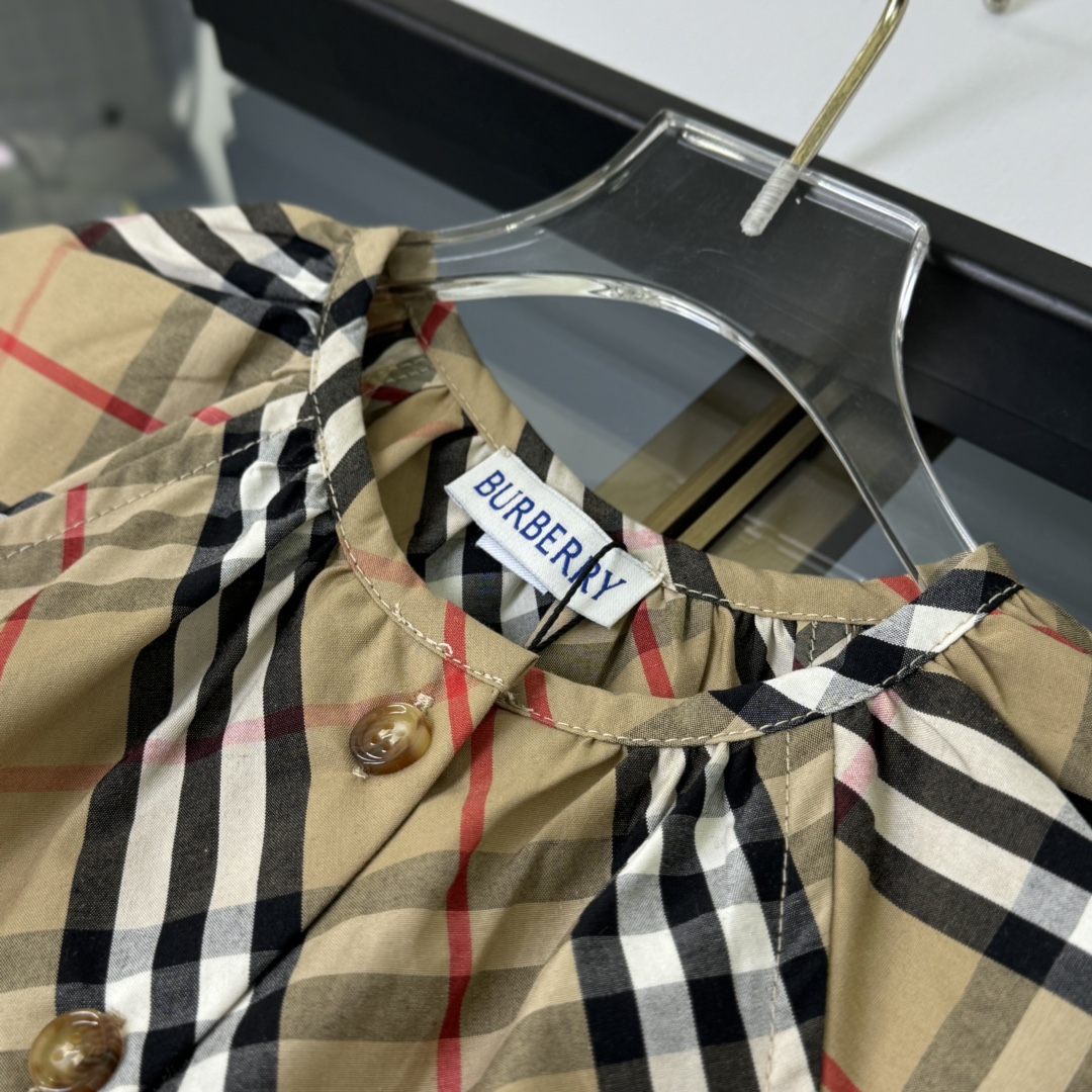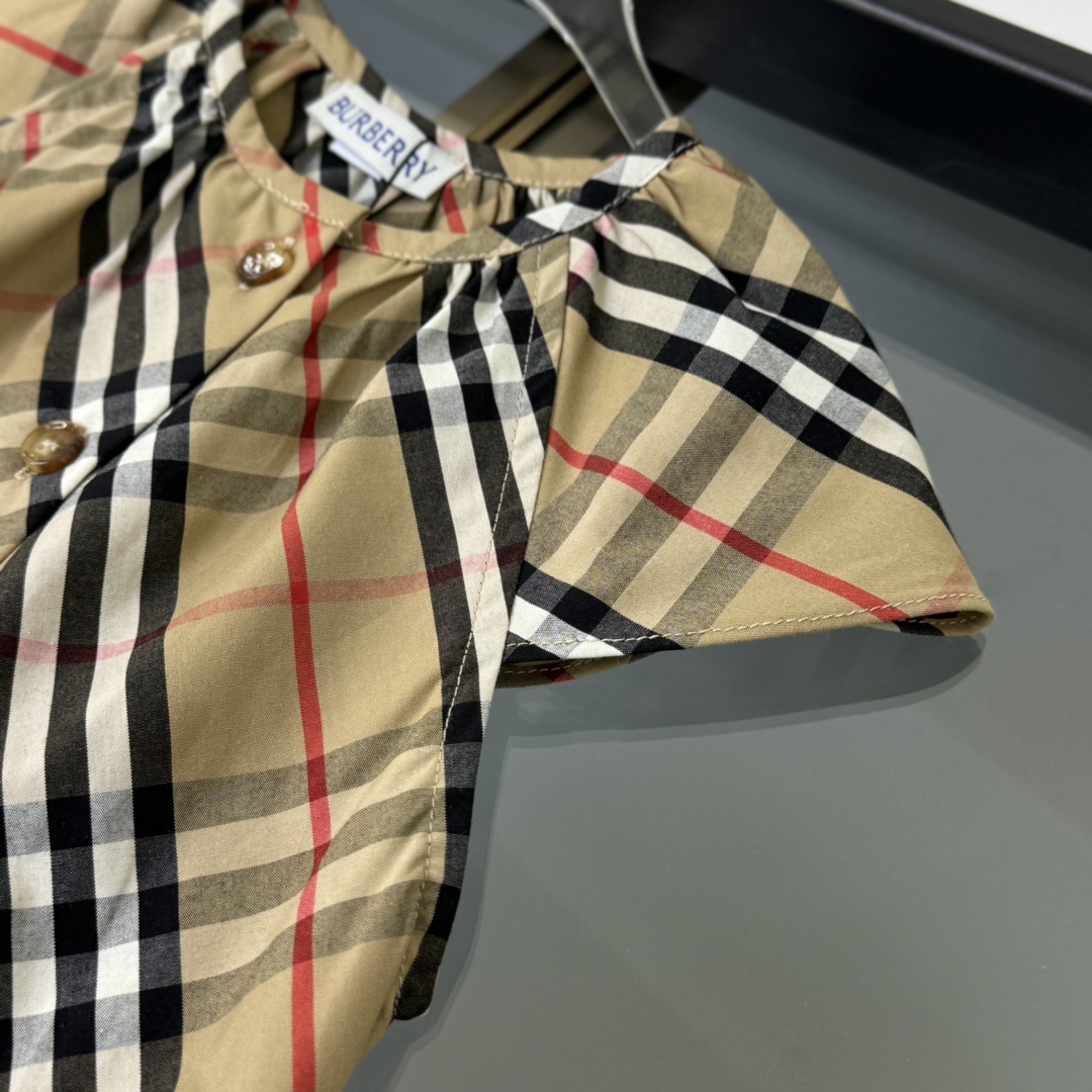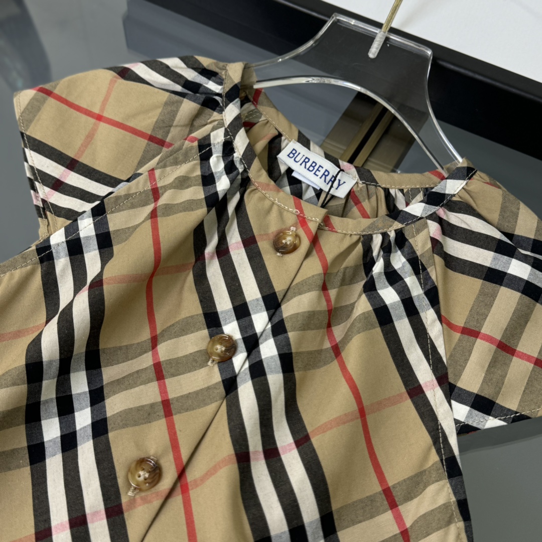 Burberry, high-end children's wear, girls' dress, custom-made checked woven cotton fabric, symmetrical design, classic and elegant, never out of style, comfortable and good-looking to wear, size: 110/120/130/140/150cm, cut 160