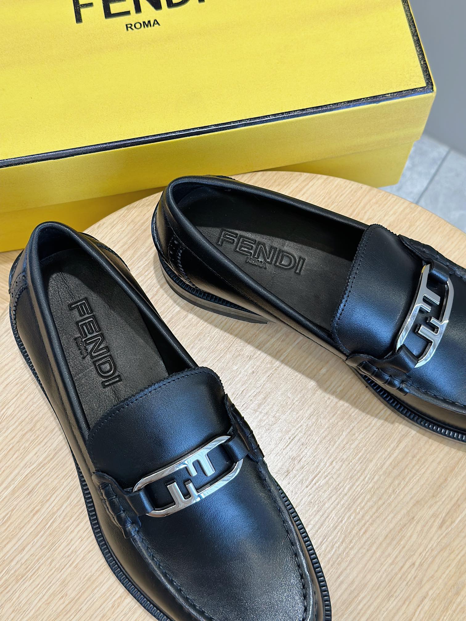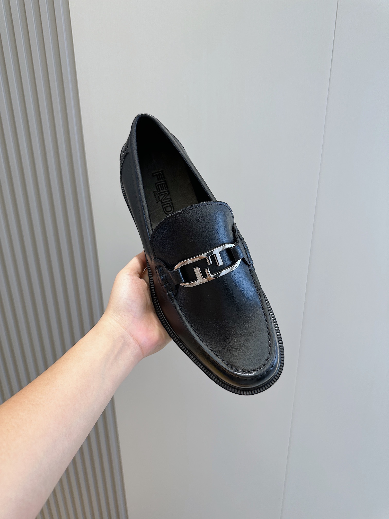 Model #4005??????Fendi black cowhide loafers for men It is decorated with FF pattern and has a silver finish metal. Imported cowhide material, cowhide lining, original factory outsole Size:39-44 (custom-made at 38.45)