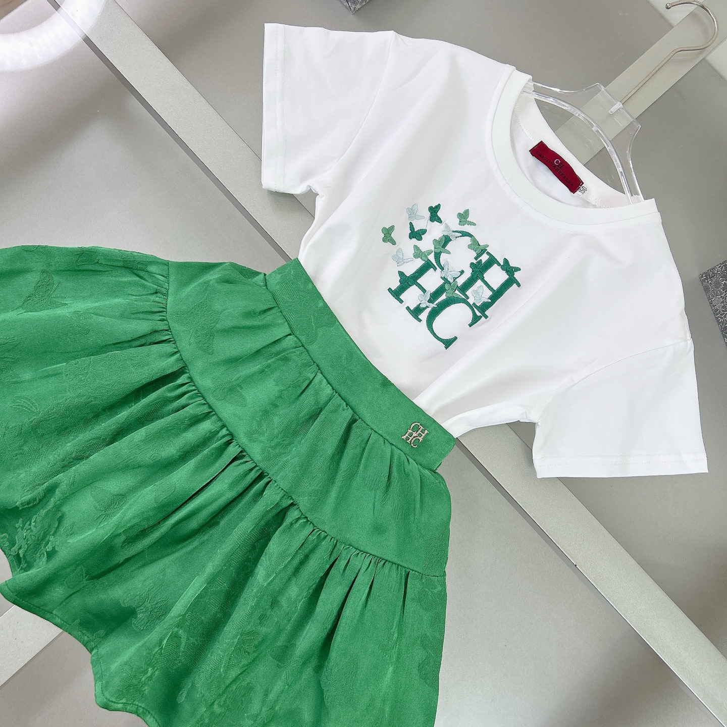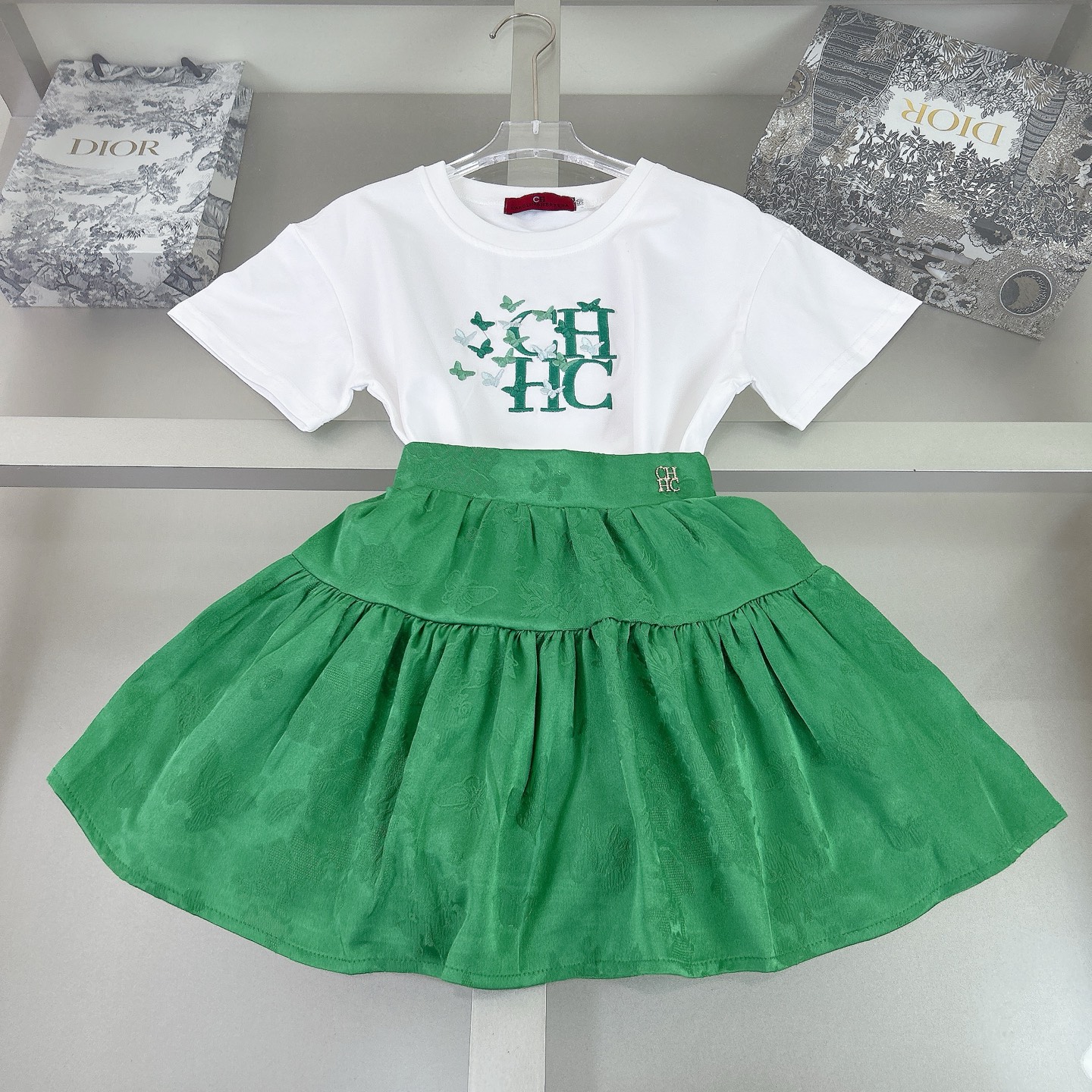 CH high-end children's clothes, girls dress, embroidery LOGO trademark English, pure cotton fabrics, upper body comfortable, good-looking, code number: 90/100/110/120/130/140/150 cm