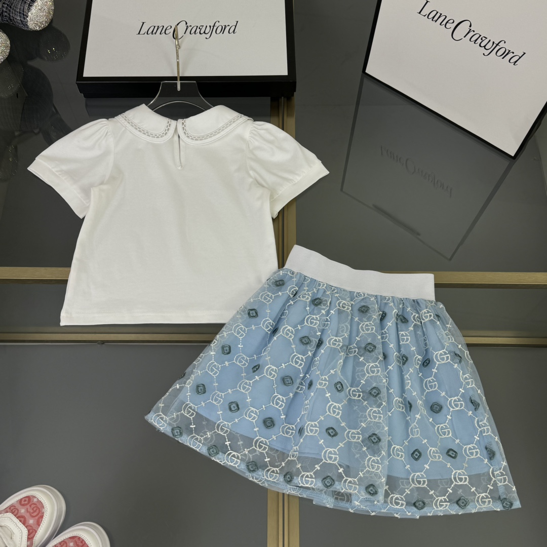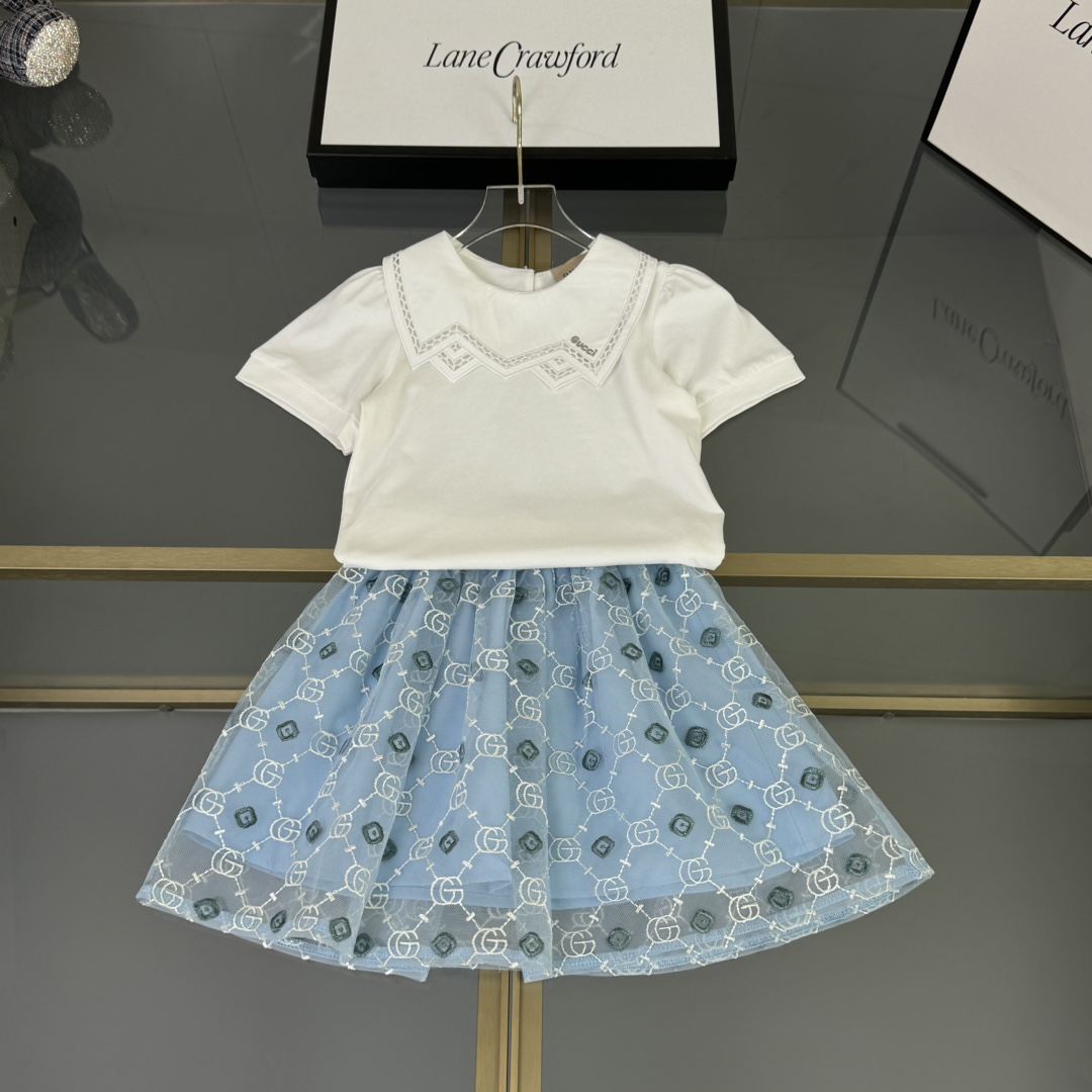 Gucci Gucci, high-end children's wear, girl's skirt, pure cotton blouse gauze skirt collocation, upper body comfortable, good-looking, code number: 90/100/110/120/130/140/150 cm