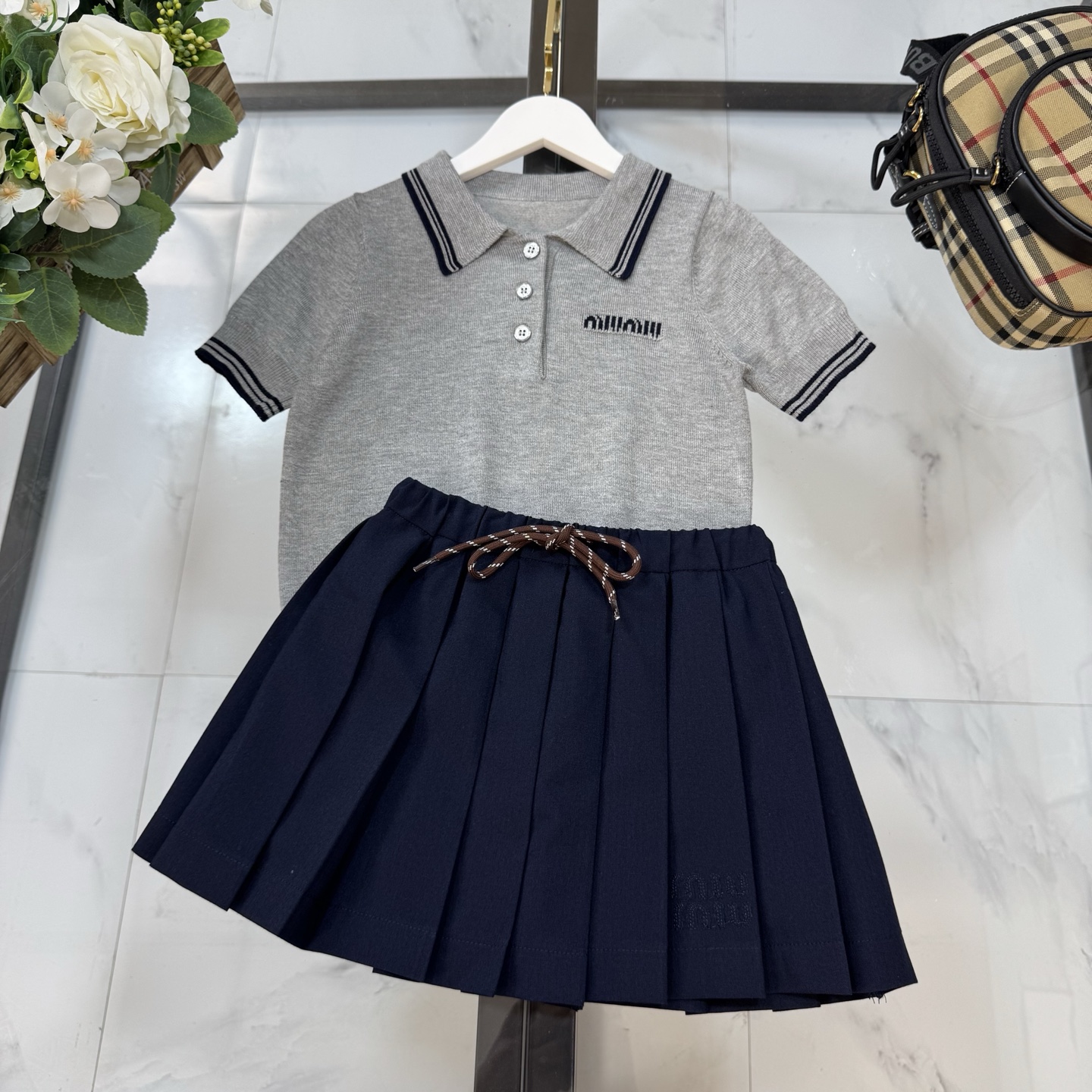 Miumiu miu miu, high-end children's clothes, girls dress, custom cotton yarn quality, classic small letters on the left side of the bump color embroidery logo, color collar design, upper body comfortable, good-looking, code number: 100/110/120/130/140/150/160 cm