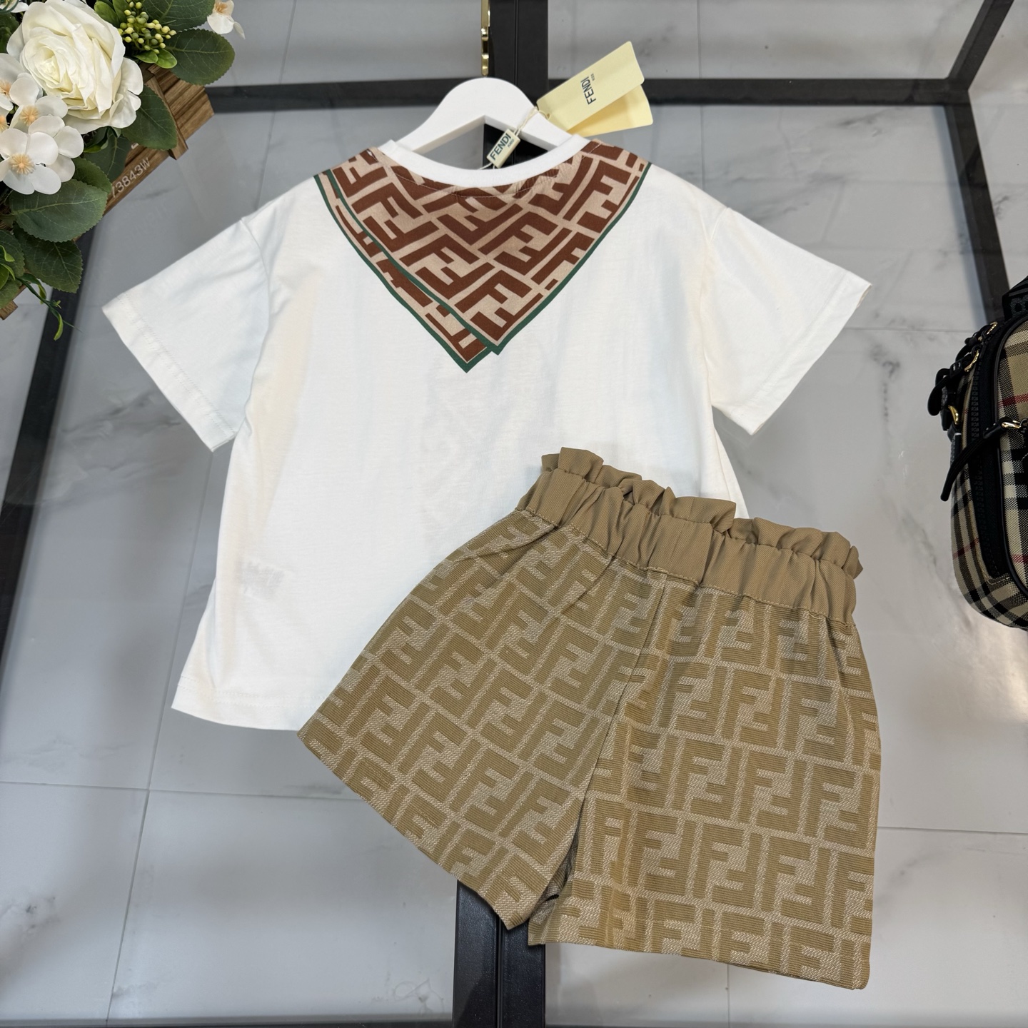 Fendi, high-end children's clothes, girls suit, pure cotton fabrics, upper body comfortable, good-looking, code number: 100/110/120/130/140/150 cm