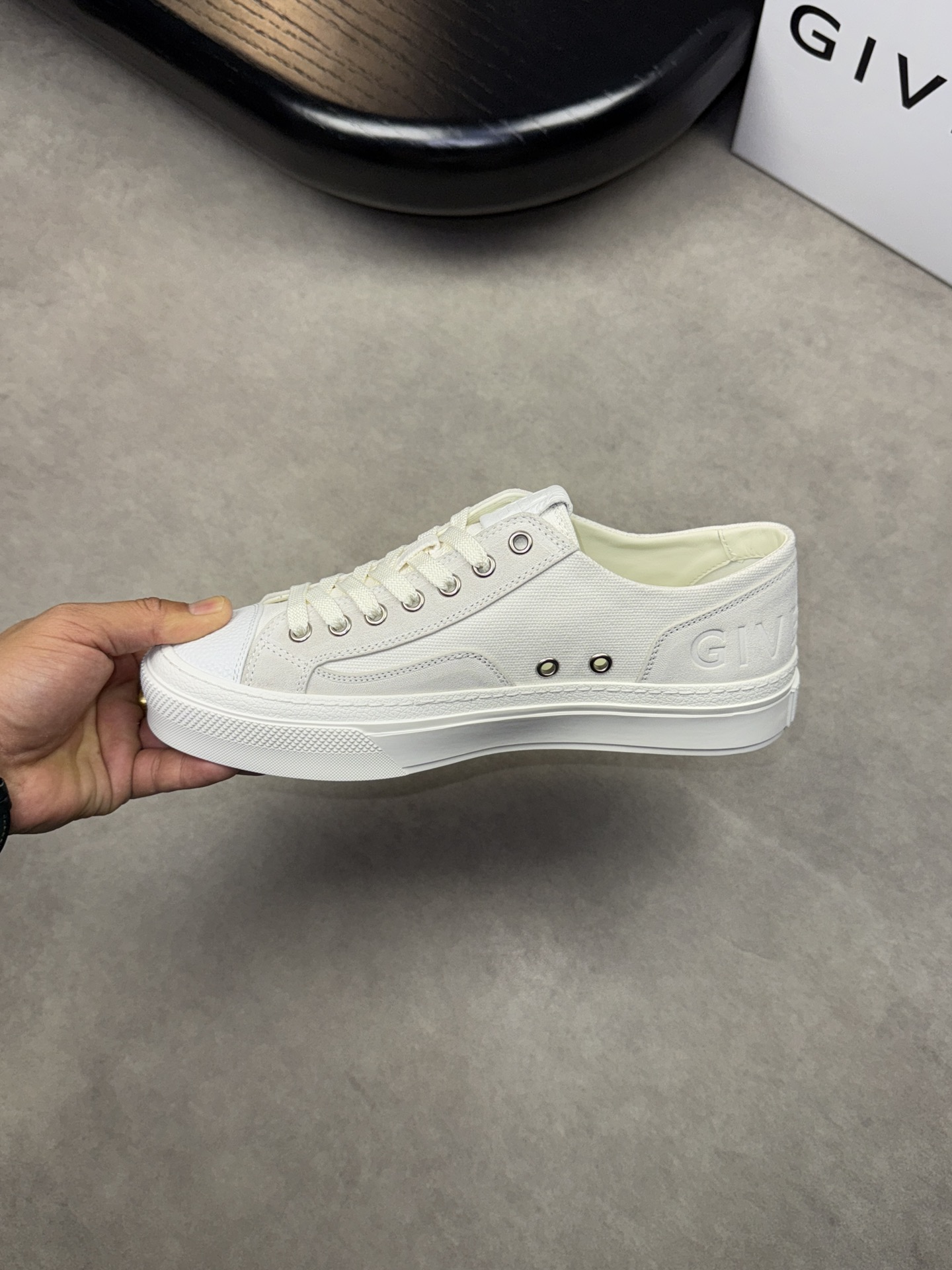 GIVENCHY #4002?????? - Premium quality original single ?????? "Shoe upper" ?? Fleece calfskin, brand denim canvas, shoe height weekly brand logo - Inside: Water-dyed cowhide - Outsole: Ultra-light TPR