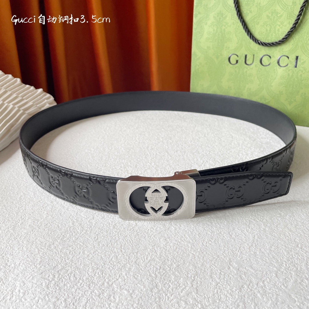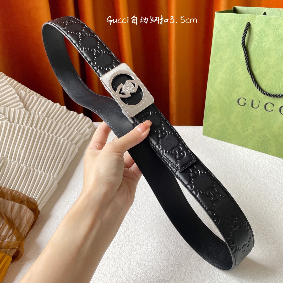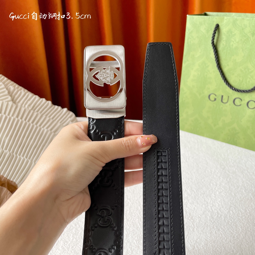 Gucci double-sided cross-patterned calfskin, with a delicate and soft touch, paired with pure steel automatic premium buttons, a must-have for men! Belt width: 3.5cm