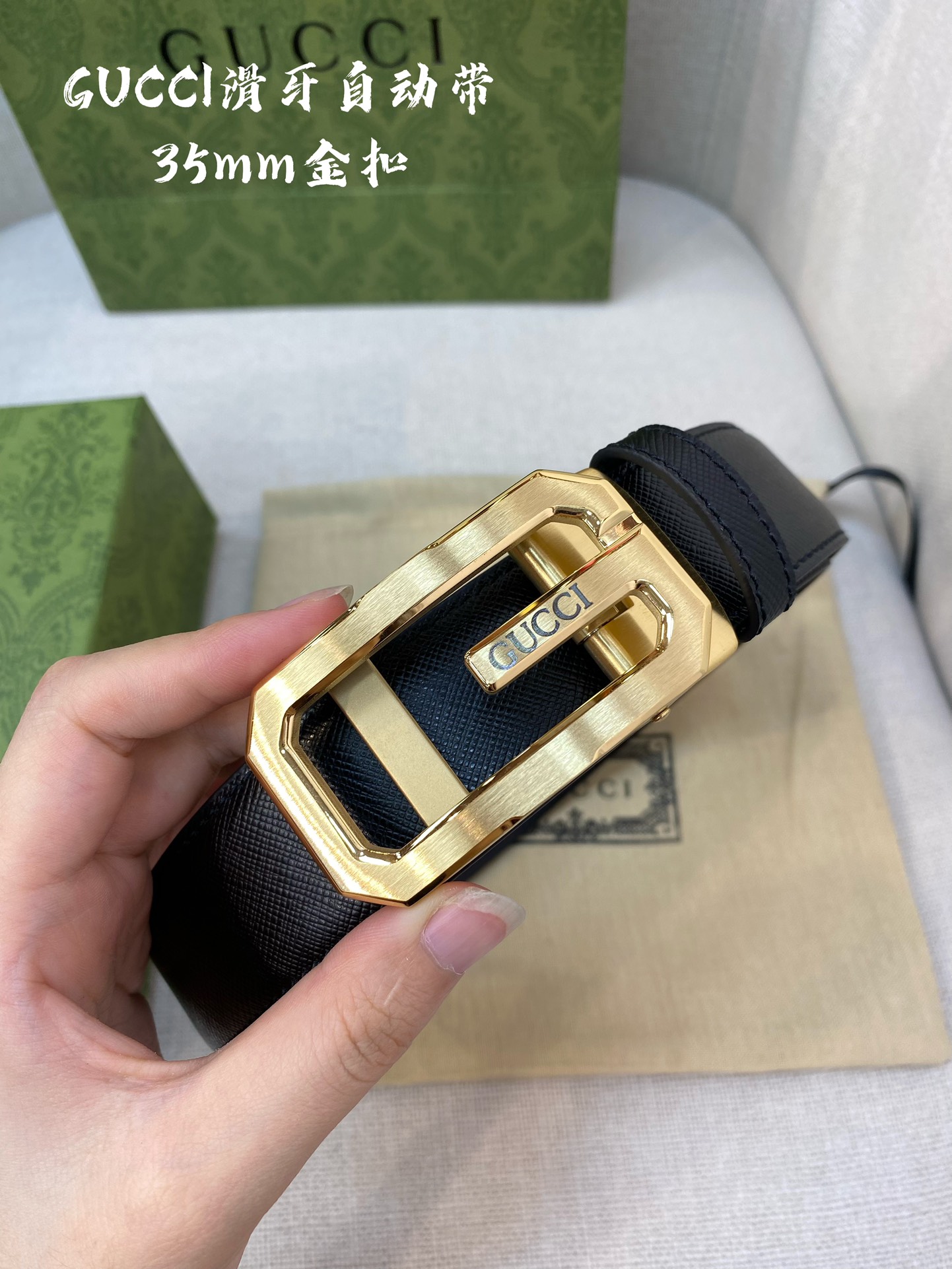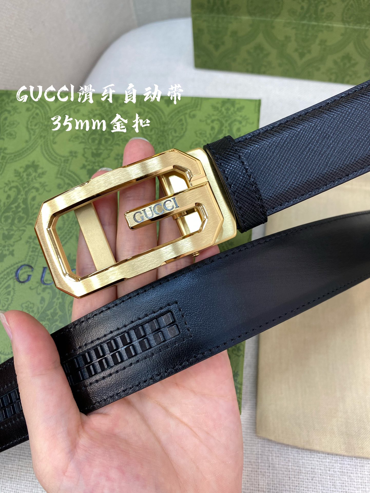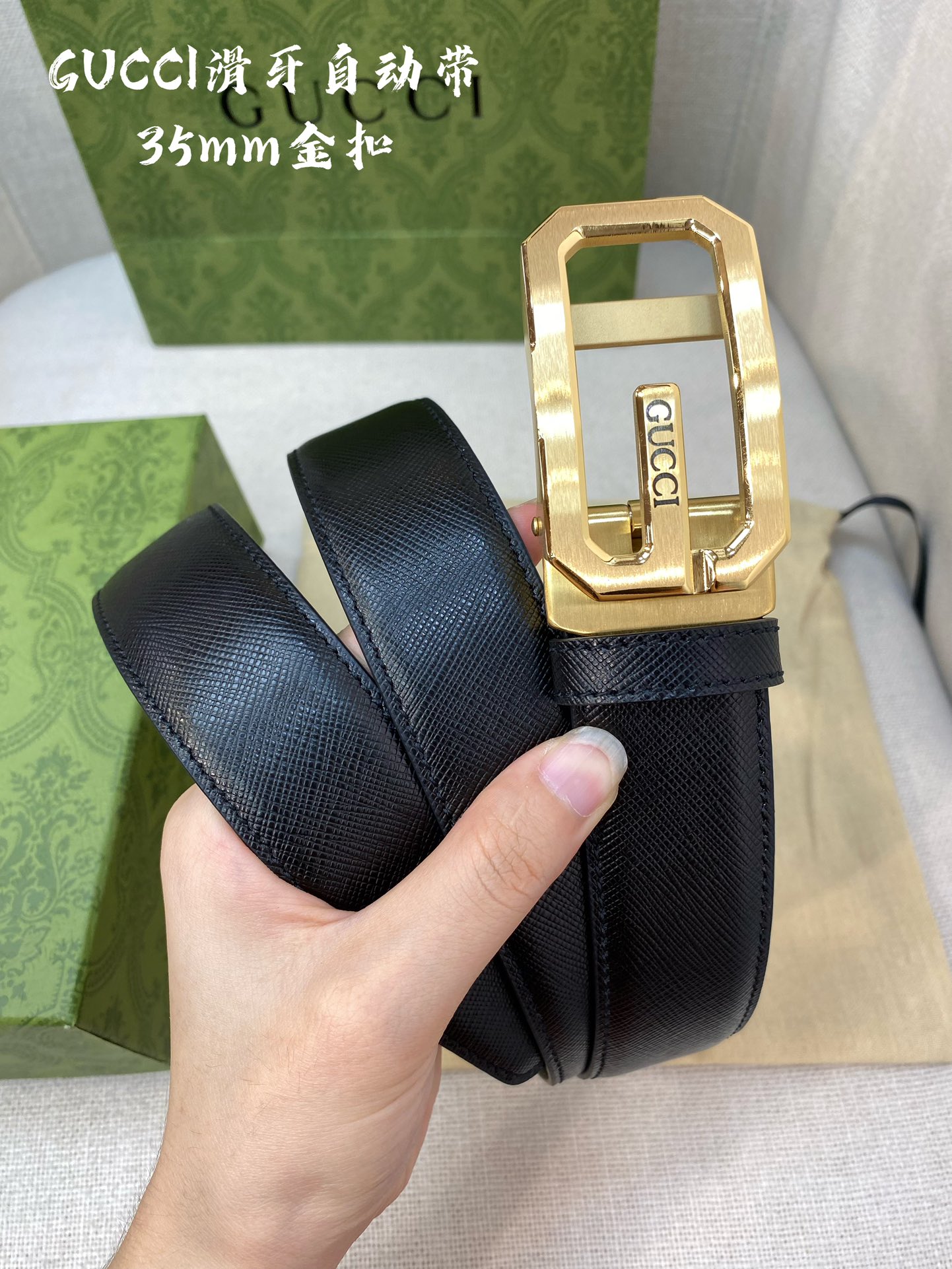 GUCCI automatic buckle style belt width :3.5CM, 316 steel buckle, hardware belt body, double-sided imported calfskin, allowing you to experience the feeling of a counter