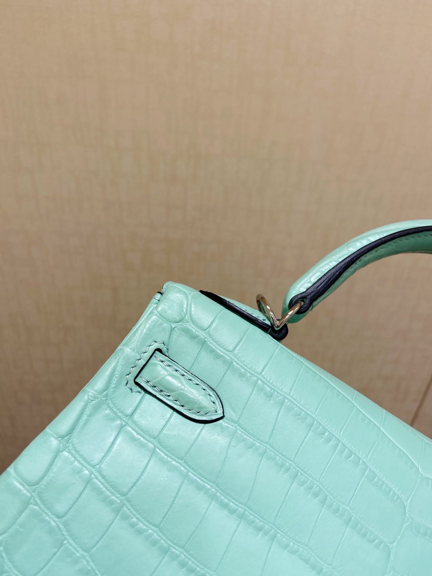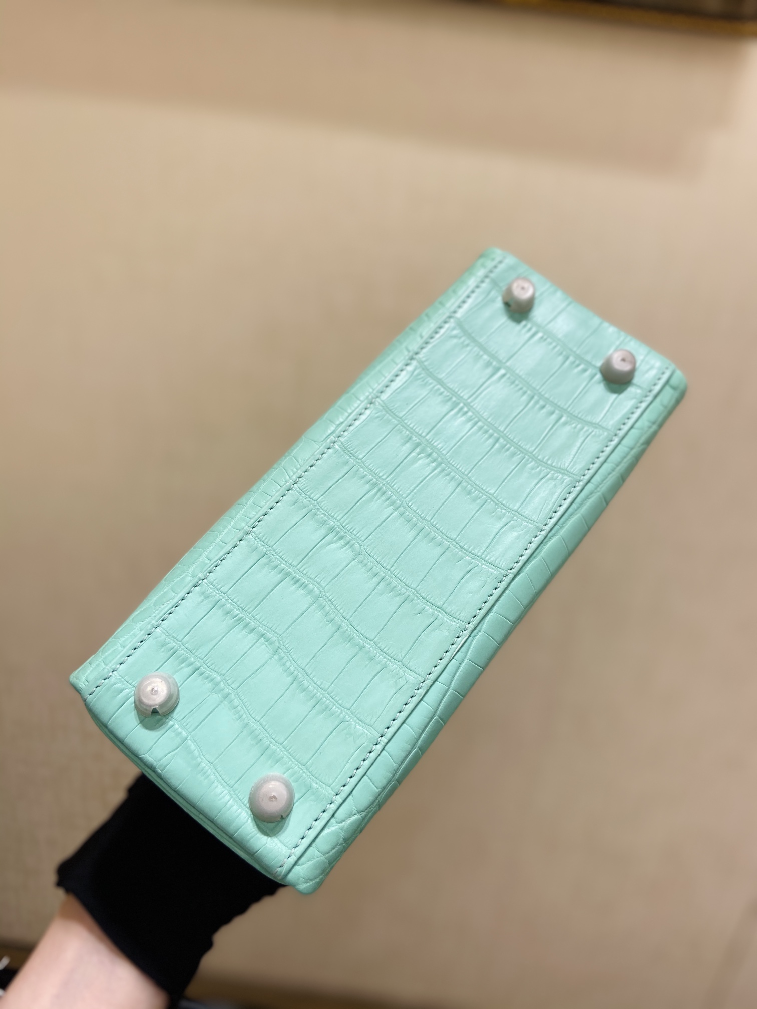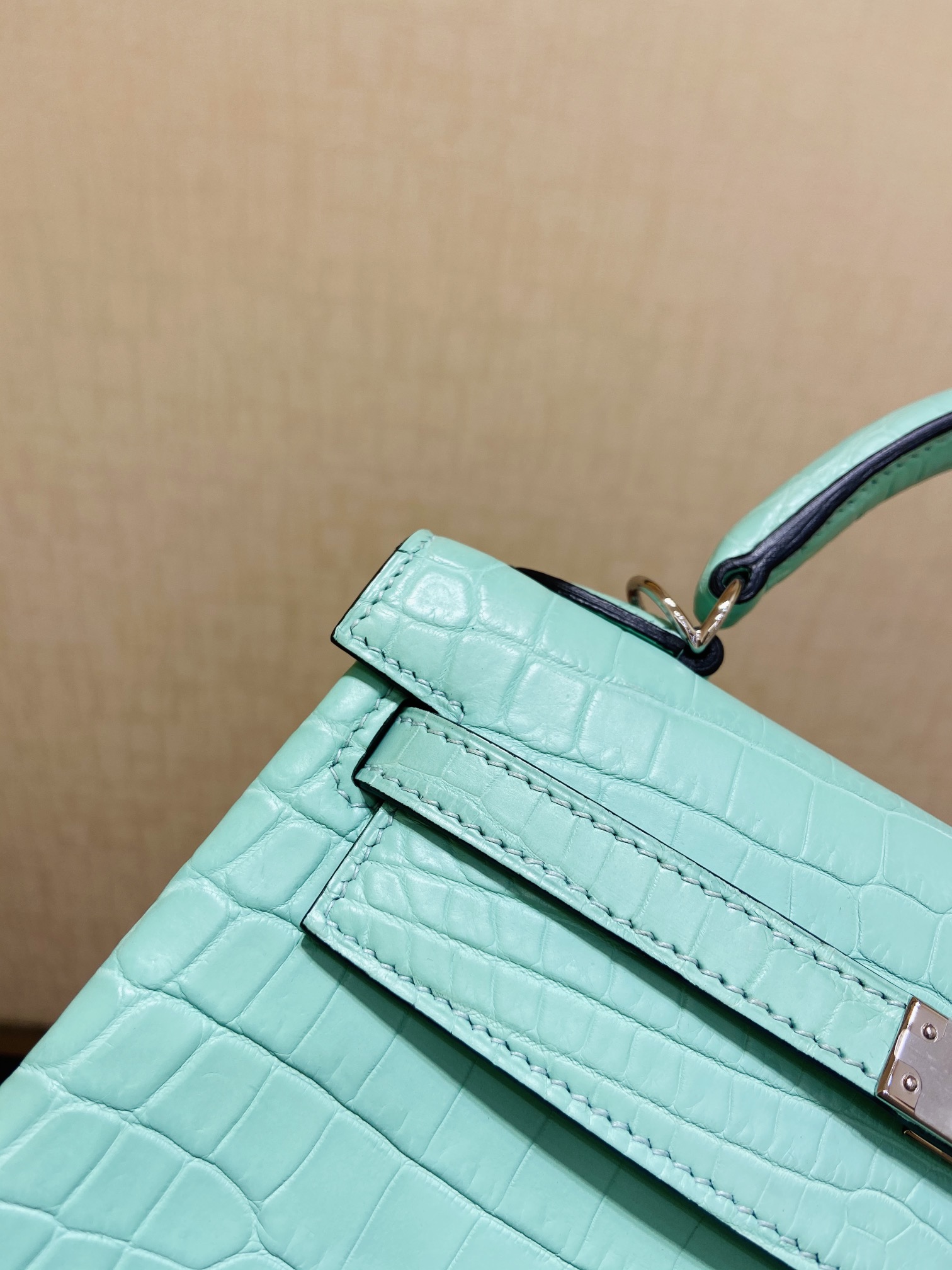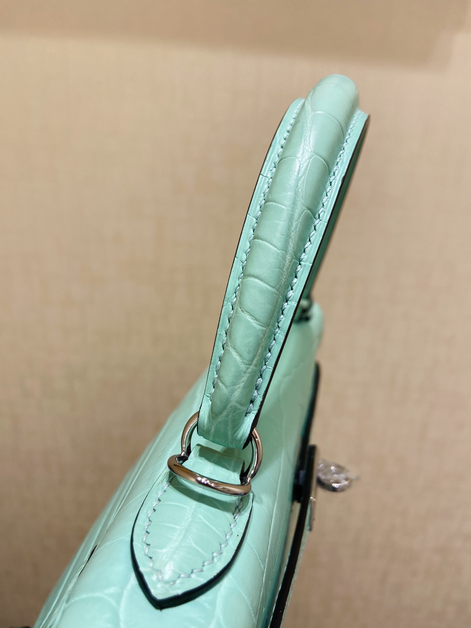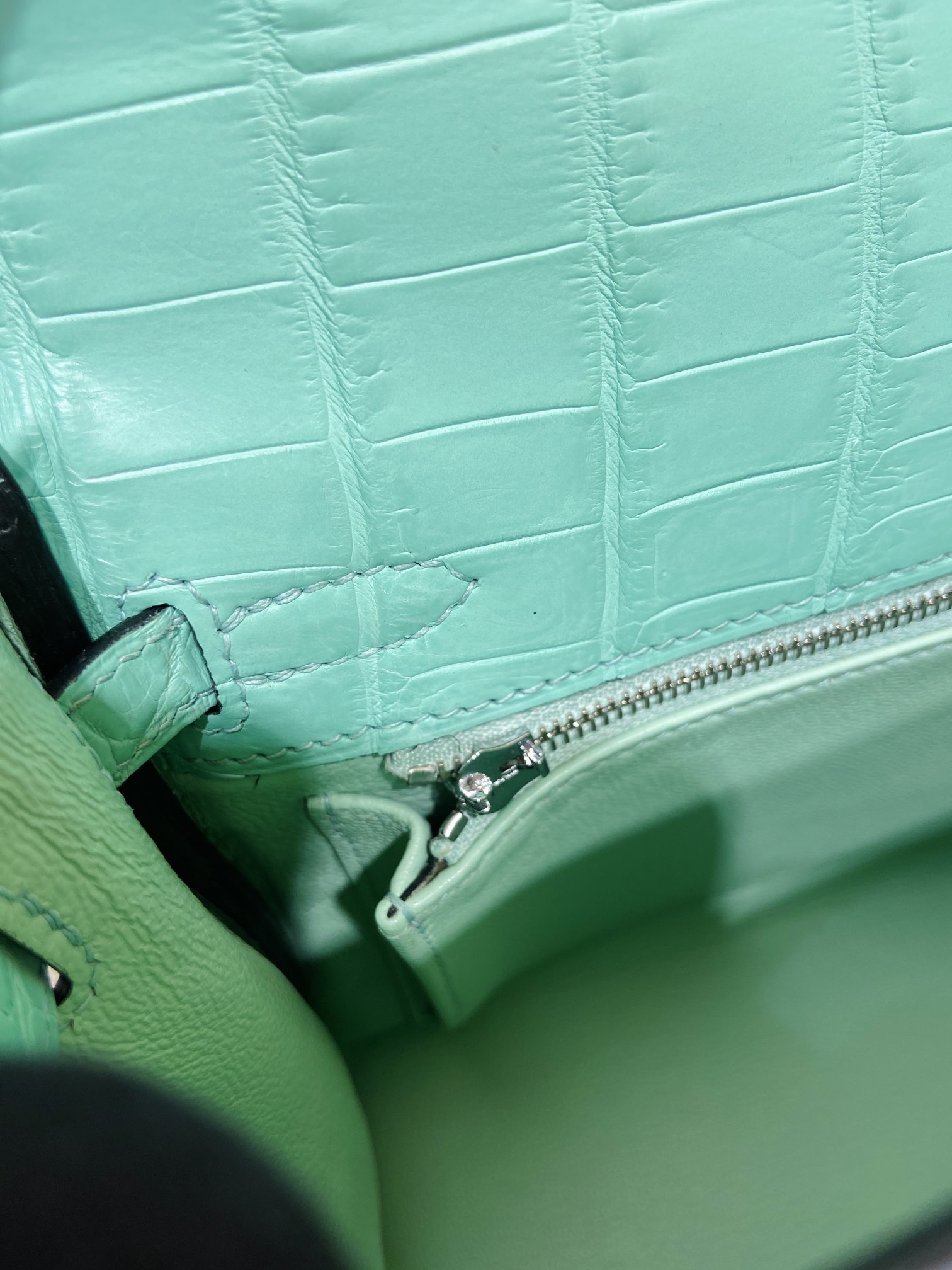 Kelly 25cm Silver button (Gold) Crocodile ?? Niloticus 6U Mint green vert deau Top handmade