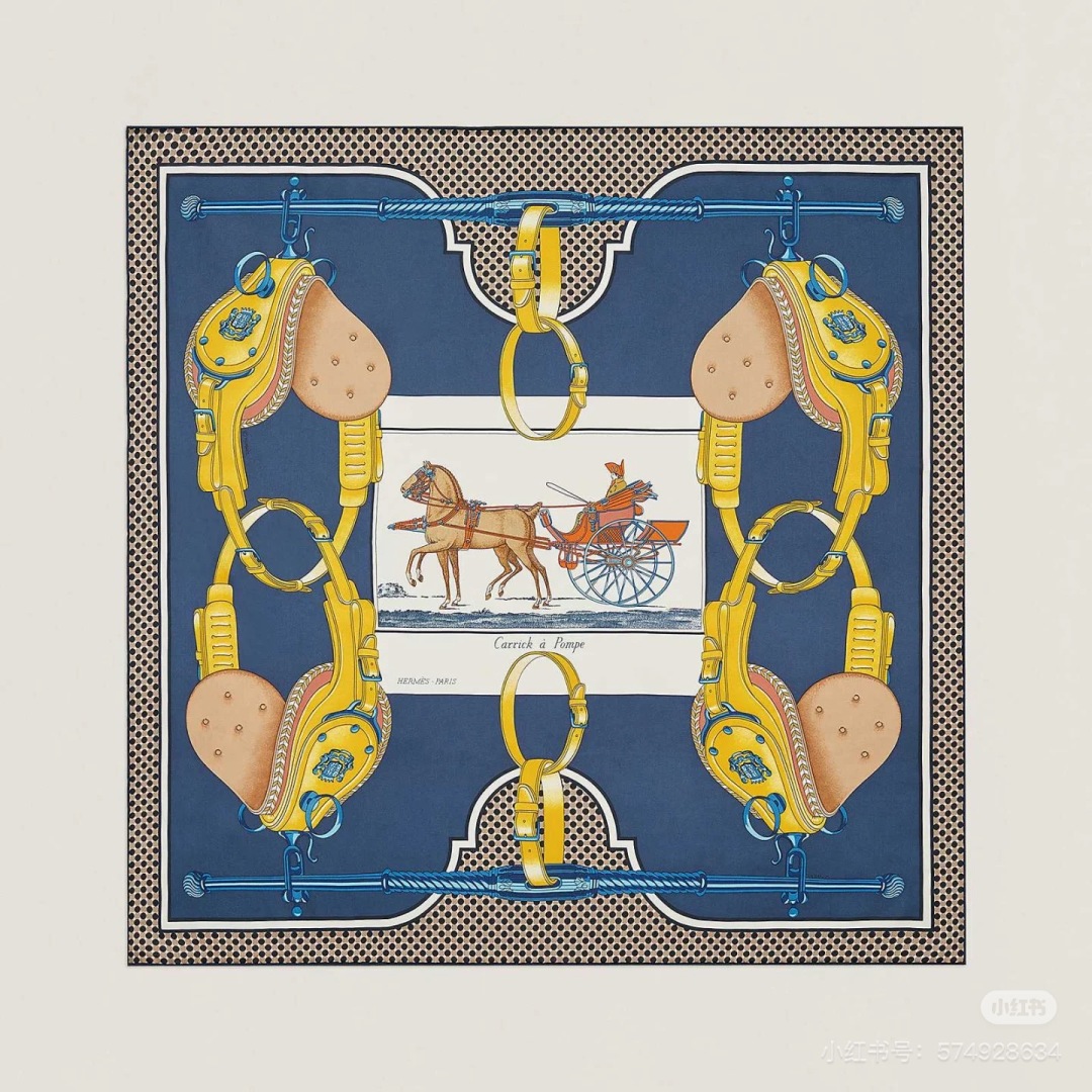 The Hermes handkerchief "Mr. Carriage" is simply stunning. With its dreamy design, it has become a masterpiece in the private collections of countless collectors! Size: 90*90cm 100% silk