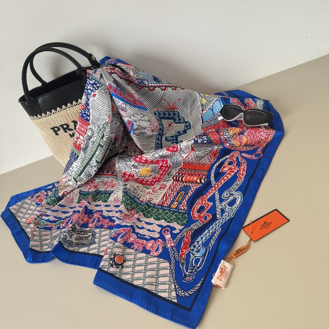 The Hermes handkerchief "Silk Scarf Adventure" is simply stunning. With its dreamy design, it has become a masterpiece in the private collections of countless collectors! Size: 90*90cm 100% silk