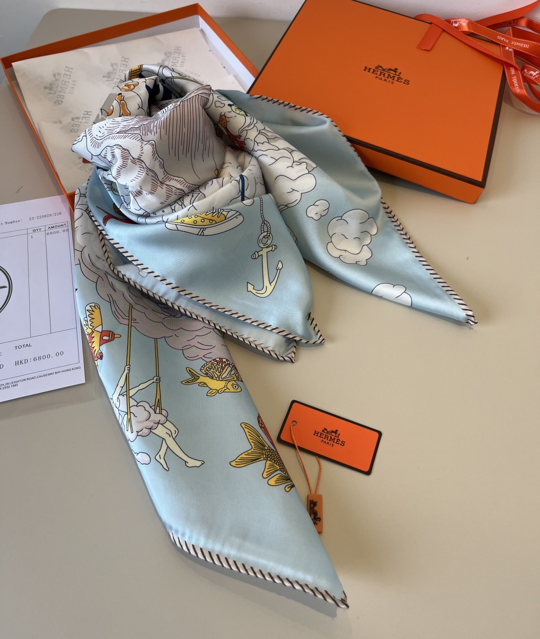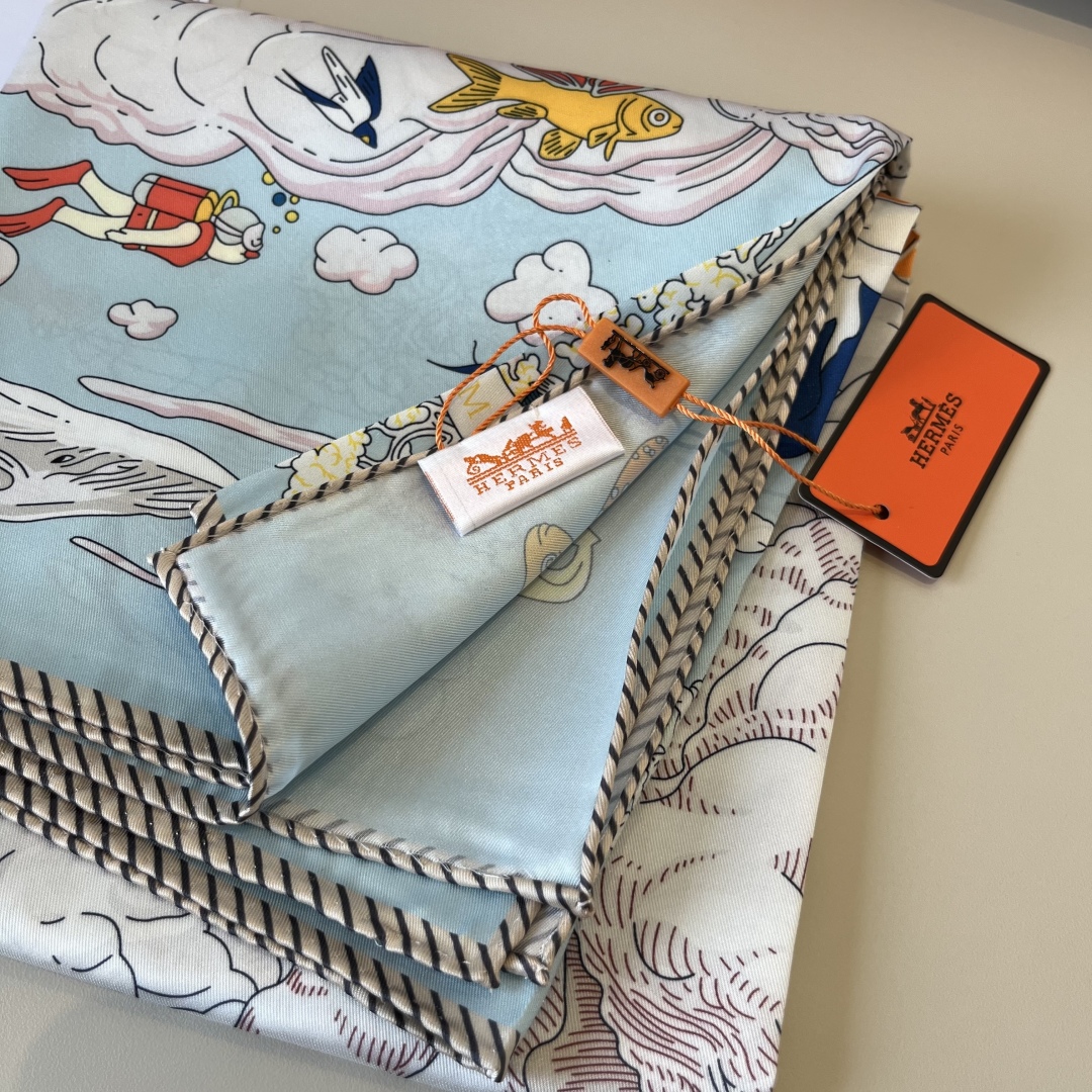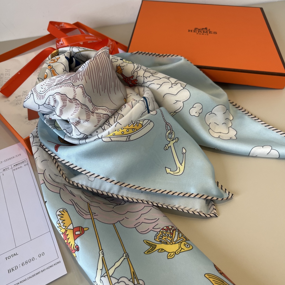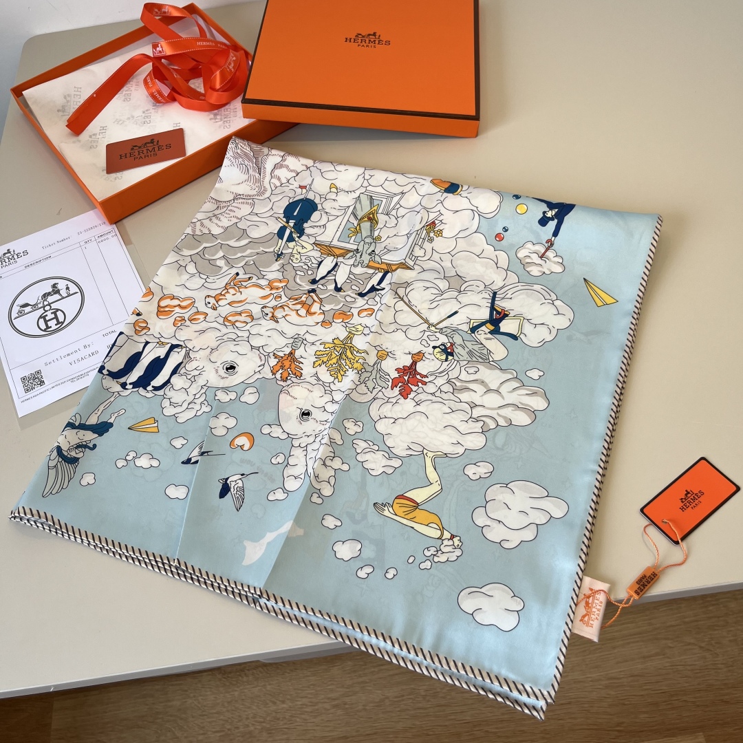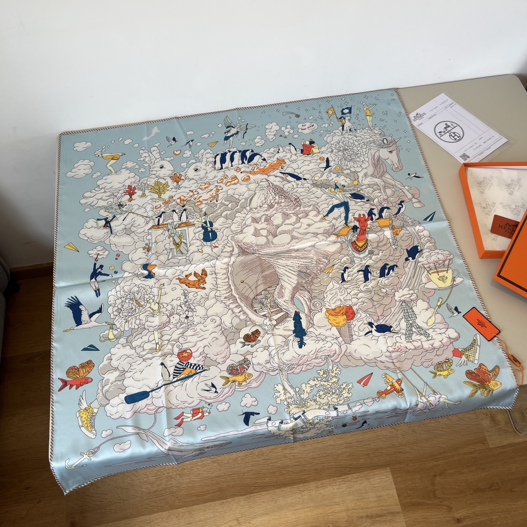 The Hermes handkerchief "My World in the Clouds" is simply stunning. With its dreamy design, it has become a masterpiece in the private collections of countless collectors! Size: 90*90cm 100% silk