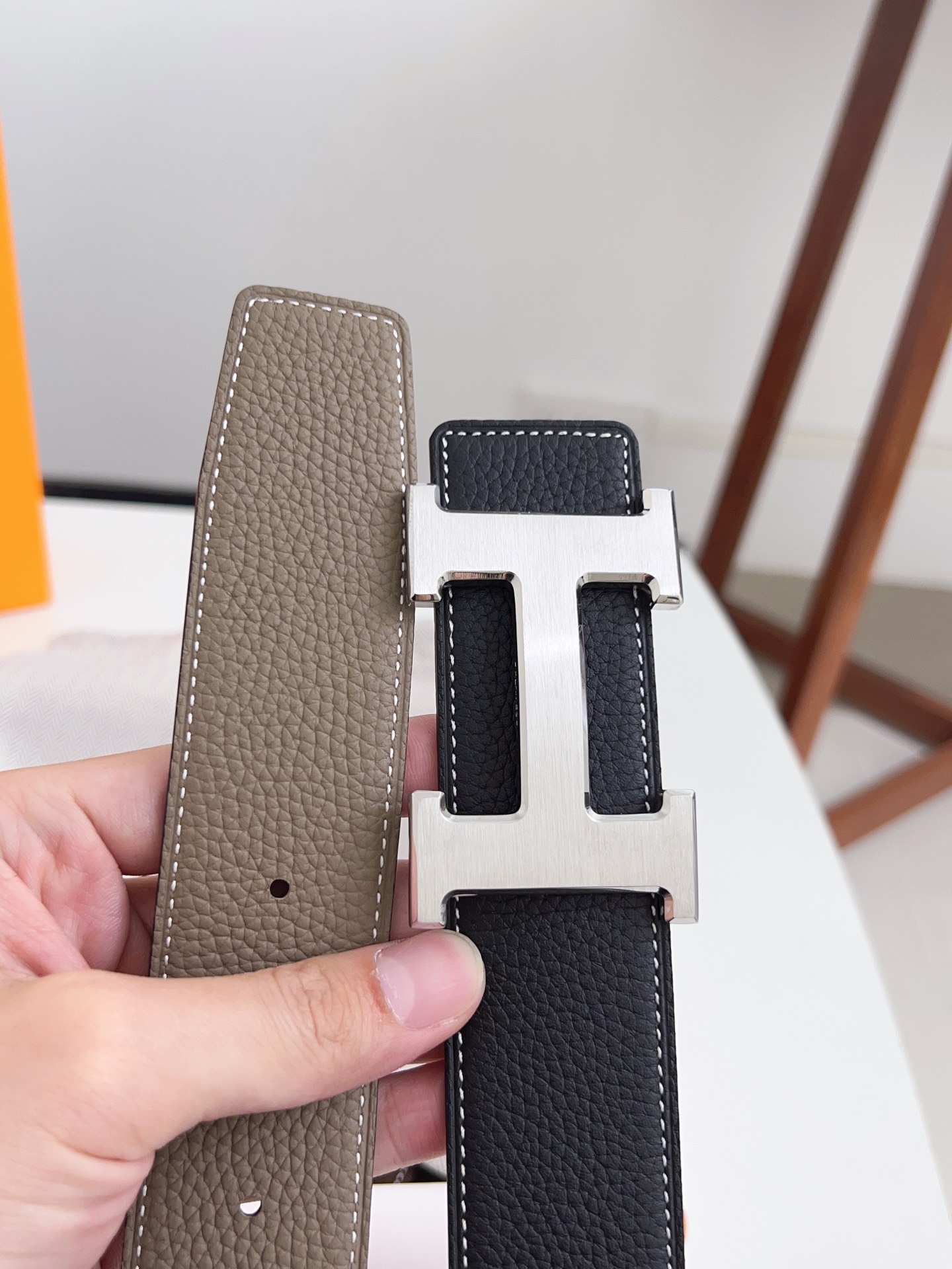 Original Hermes item, width 3.8cm Sg Double-sided top layer togo lychee grain, soft leather material. It can be used on both sides, with fine workmanship and excellent quality. Buckle: Stainless steel buckle (gold and silver)