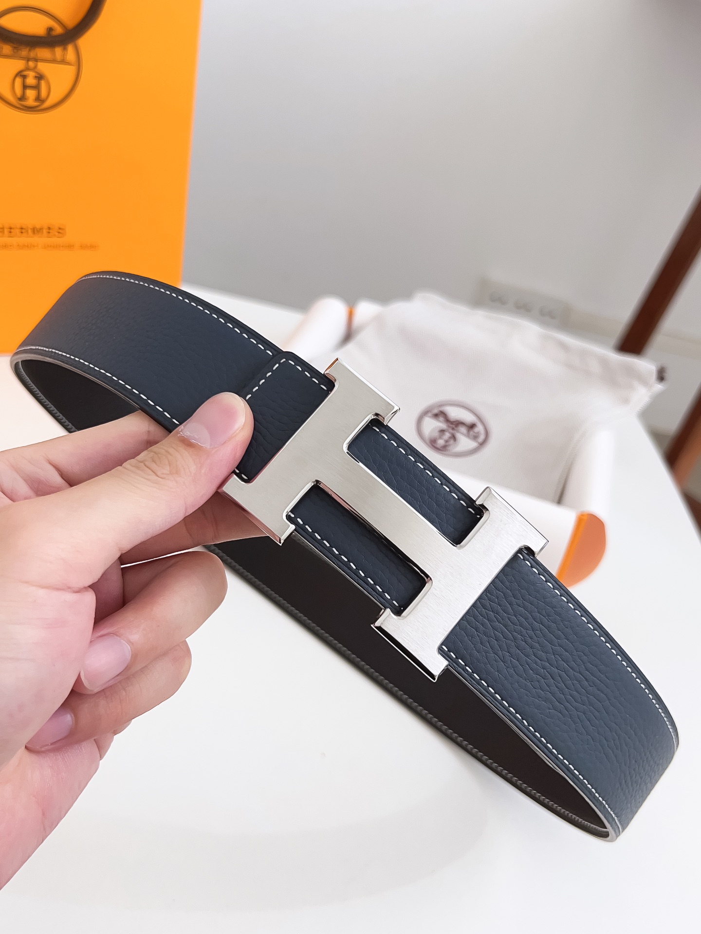 Original Hermes item, width 3.8cm Sg Double-sided top layer togo lychee grain, soft leather material. It can be used on both sides, with fine workmanship and excellent quality. Buckle: Stainless steel buckle (gold and silver)