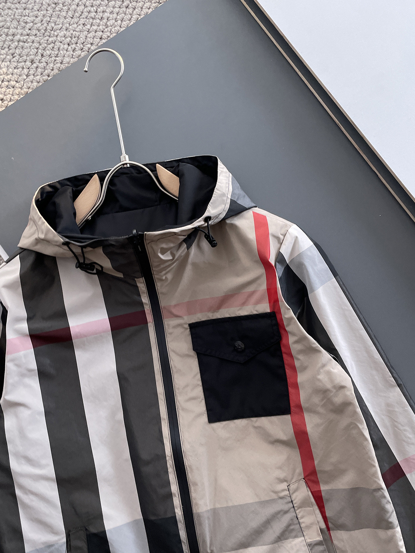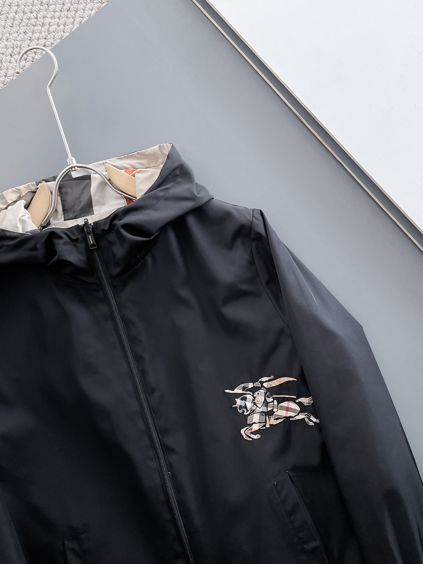 Burberry's double-sided 2025 Spring New casual jacket, the latest fashionable casual jacket, fashionable casual jacket! Made of professionally customized technological fabric, the surface is clean, smooth and lustrous. The texture is obvious even through the screen. It is comfortable, light and not stuffy when worn, providing you with the most enjoyable wearing experience! Exquisite Logo accessories! It perfectly enhances the overall sense of luxury and grade, and the high-end luxurious atmosphere can be immediately perceived! This basic and regular hooded jacket has a simple and versatile cut that is not picky about the wearer. It can easily handle various occasions and environments and is undoubtedly an essential item for daily commuting! Size: M-3XL. Please report your height and weight when placing an order!