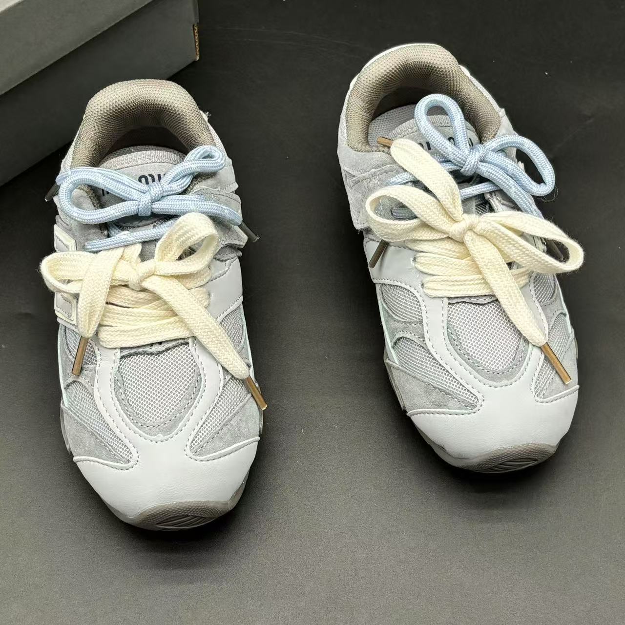 High-end children's shoes, men's and women's shoes, NB miumiu collaboration Pig eight leather mesh Velcro children's shoes, with lacing design, comfortable and good-looking to wear, size: 24-37