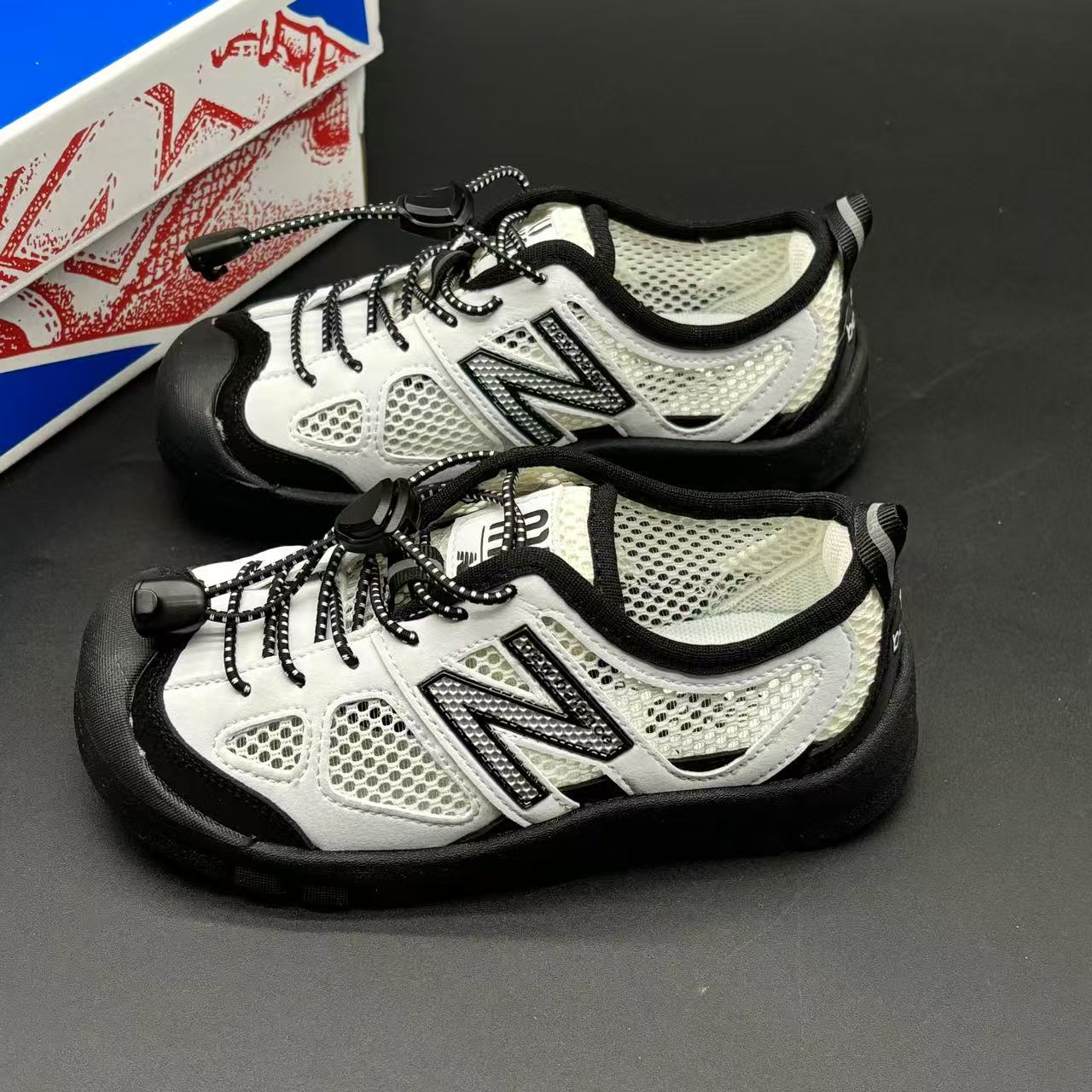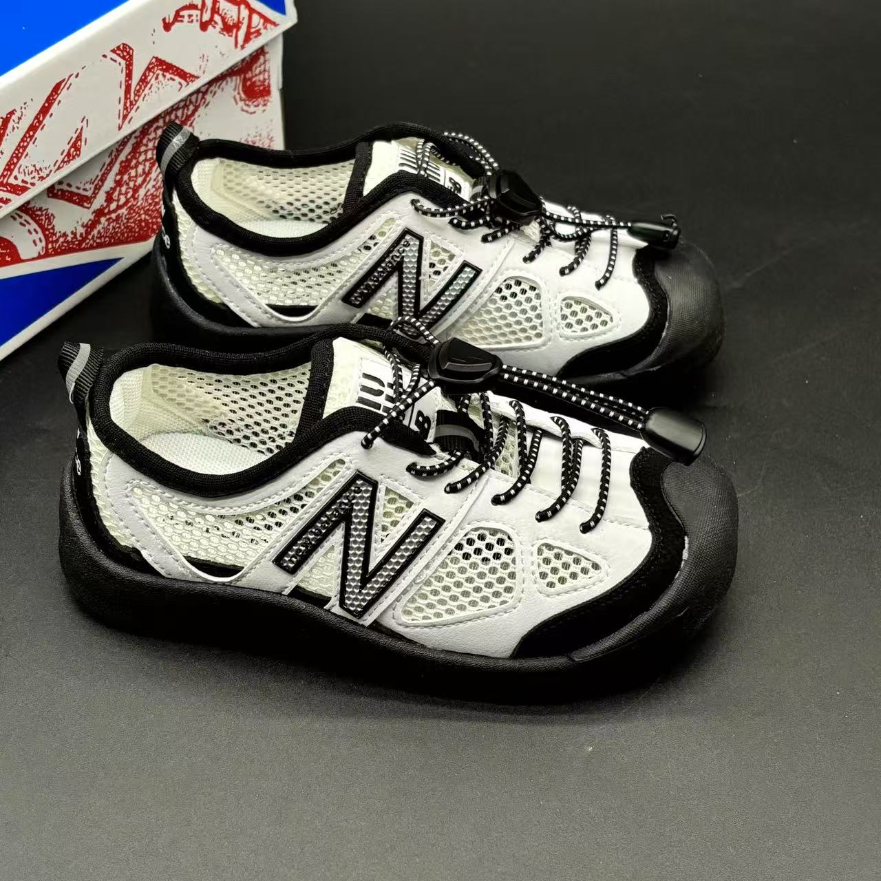 High-end children's shoes, men's and women's shoes, NB530 miumiu elastic band children's canyoning soft-soled children's beach sandals with breathable mesh, comfortable and good-looking to wear, size: 26-37