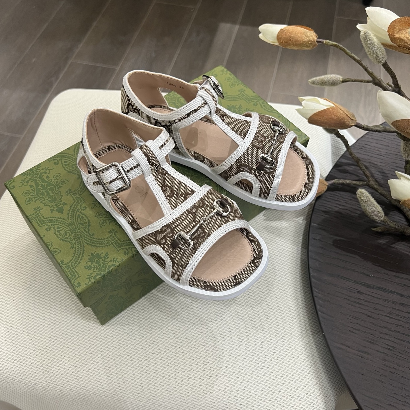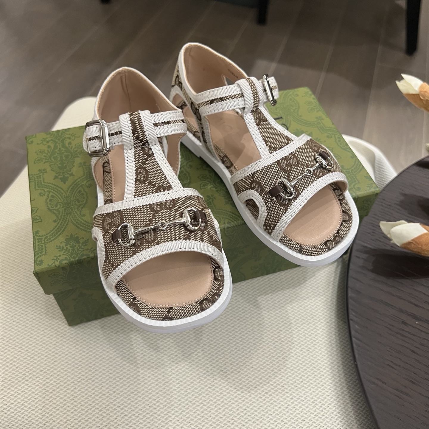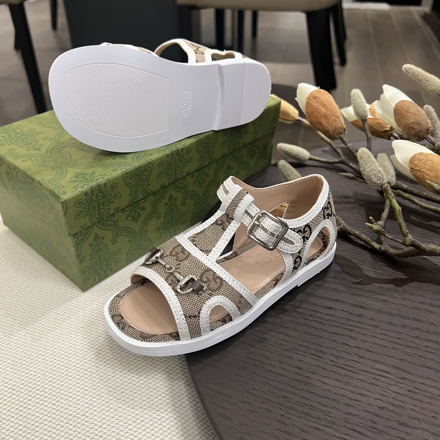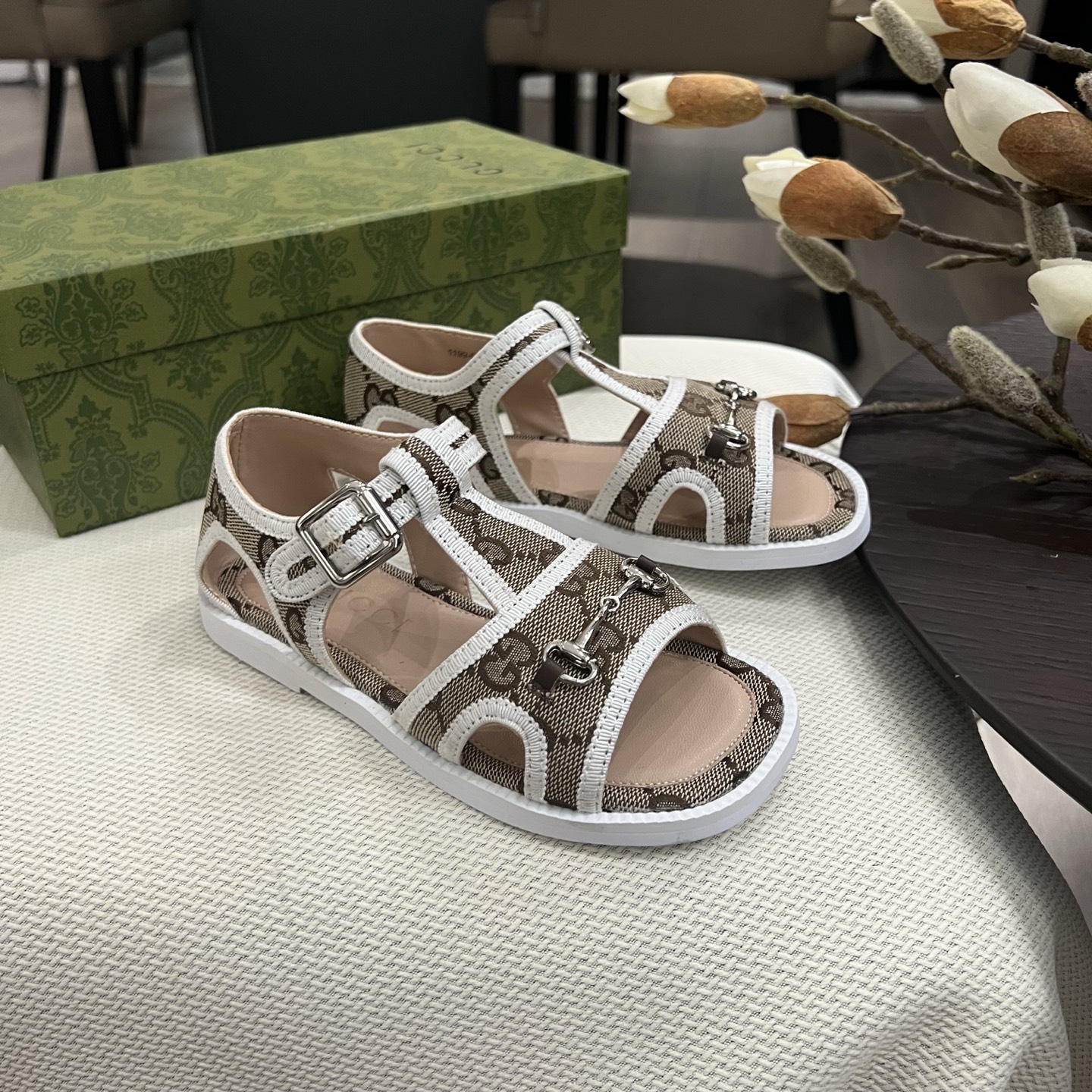 Reservation for 4 days! Gucci HIGH-END children 's shoes, boys' and girls' sandals, classic double G fabric ? classic hardware buckle, COMFORTABLE FIT and GOOD look, size: 26-35
