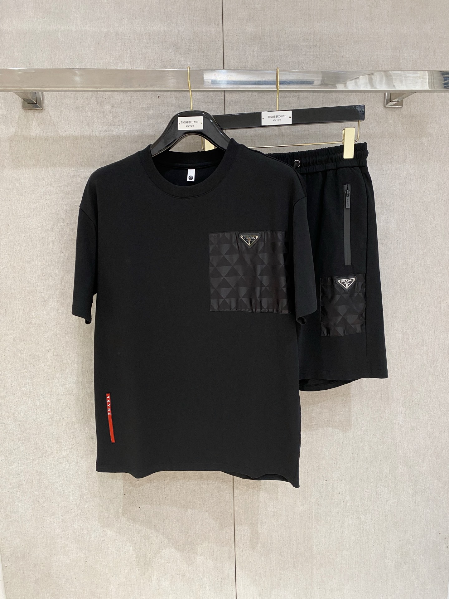 Prada ???? high-end custom 2025 spring/summer new collection launch counter the latest short-sleeved and short-shorts casual set high-end custom design avant-garde fashion! The brand logo emphasizes high-end custom pure cotton fabric with meticulous craftsmanship design. Soft to the touch. Comfortable to wear. Counter level exquisite vehicle lines. The workmanship is exquisite. The wearing effect is incredibly cool! Essential items for stylish men!