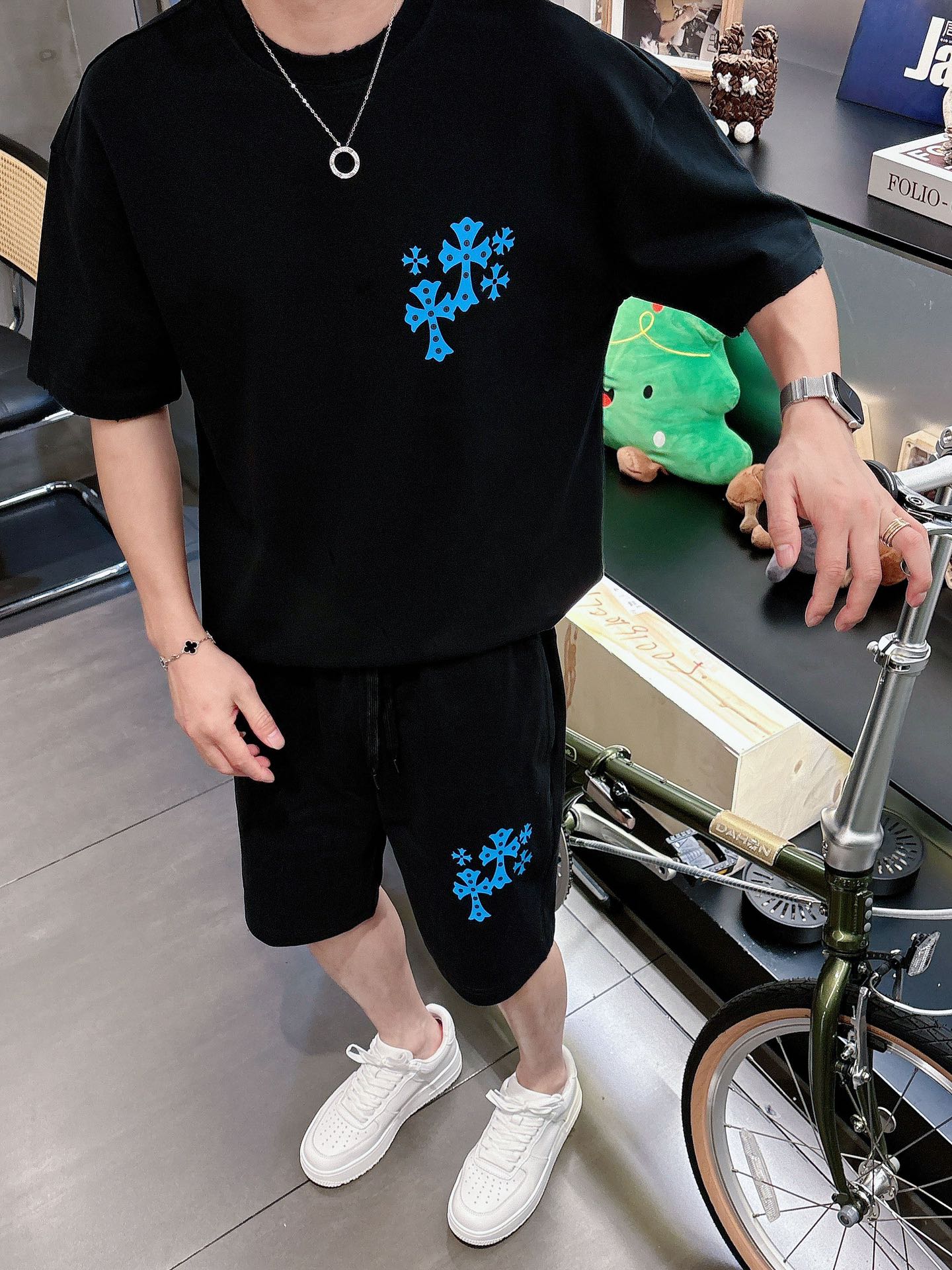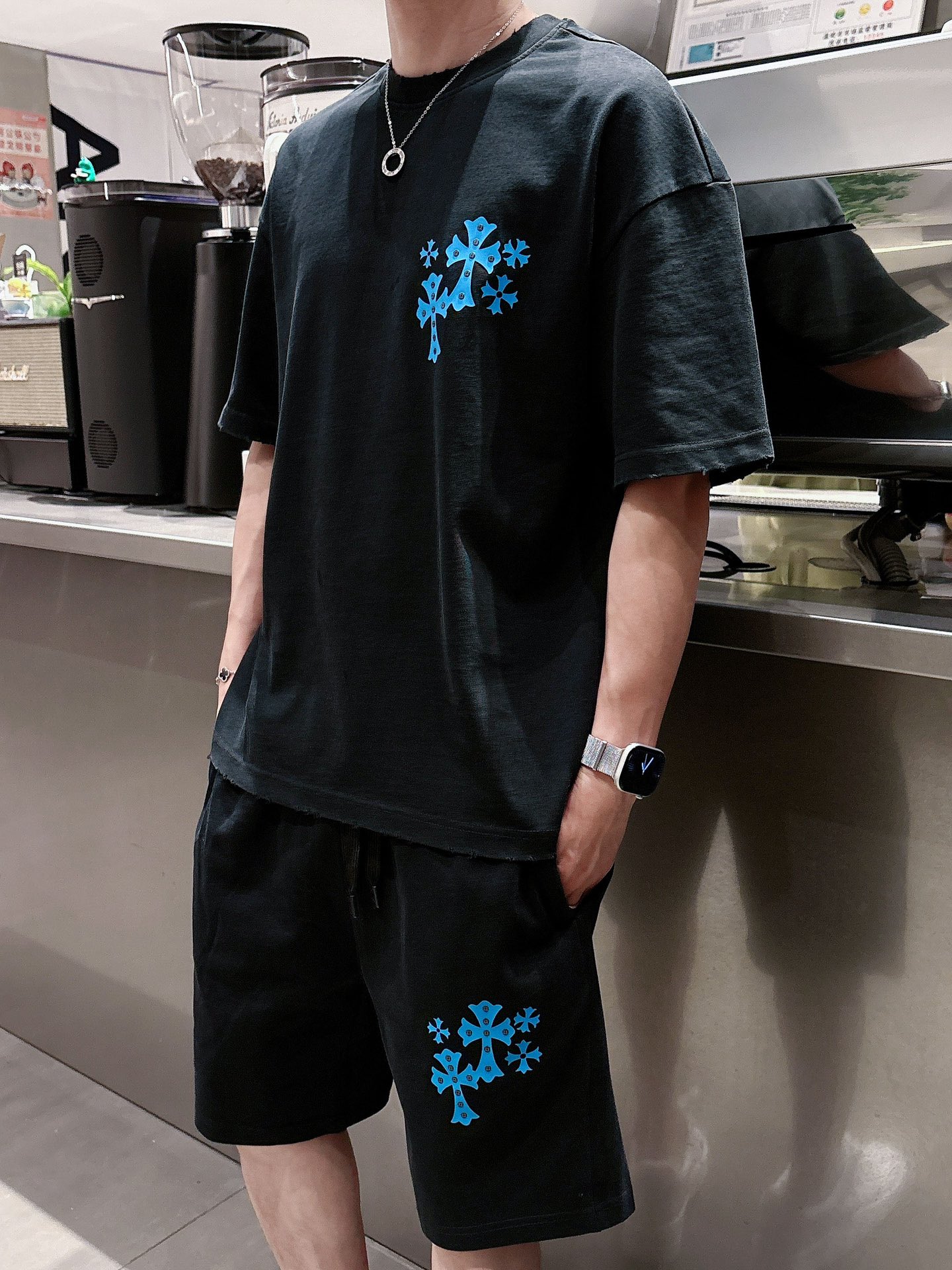 Kroxin ???? high-end custom collar, sleeve and hem design with holes. New spring/summer 2025 collection first release at the counter. The latest short sleeves and shorts casual set. Heavy concave and convex pattern design. High-end pure cotton custom design, avant-garde and fashionable! The brand logo emphasizes high-end custom pure cotton fabric with meticulous craftsmanship design. Soft to the touch. Comfortable to wear. Counter level exquisite vehicle lines. The workmanship is exquisite. The wearing effect is incredibly cool! Essential items for stylish men! Size: M-2XL loose style. Please report your height and weight